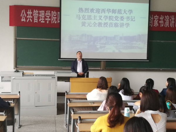 5月26日下午在知津楼六阶,原重庆师专校友、西华师范大学mansion88主页党委书记黄元全教授应邀来校讲座,我院2015级、2016级思想政治教育专业全体学生到场聆听,讲座由李才俊书记主持。