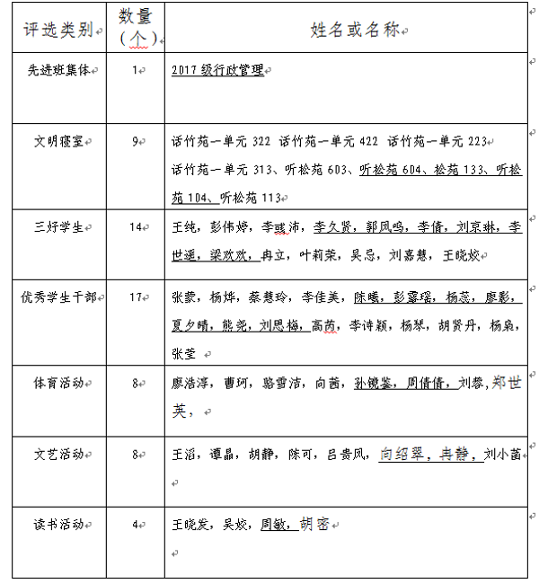 经过学生本人申报,按照学校学工部、团委相关通知文件,通过年级审核、学院学工领导小组决定对2018年度表现优秀的集体和先进个人进行表彰。