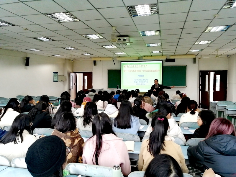 2020年11月24日10:20,我院邀请文理附中喻德贵副校长在知津楼D406为2020级思想政治教育专业大一新生上了一堂别开生面的思想政治教育专业导论课。