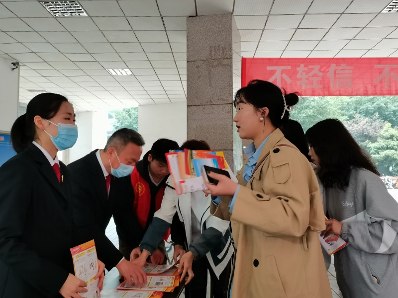 为守护校园消费安全,提高大学生依法维权意识,进一步宣传贯彻消费者权益保护法等法律法规,推动全社会共同努力做好新时代消费维权工作,我院携手永川区消费者协会、永川区市场监管局、永川区人民法院、中国人民银行永川中心支行、永川区消防总队等单位,于3月16日上午在知津楼门厅联合开展了一场主题为“凝聚社会力量协同共治 筑牢消费安全社会基础”的消法宣传活动。