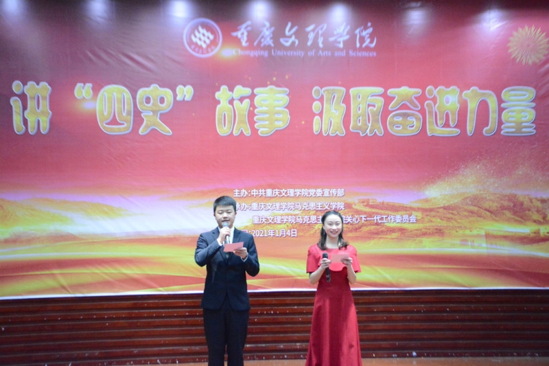 1月4日晚,由学校党委宣传部主办、mansion88主页承办的“讲‘四史’故事,汲取奋进力量”主题宣讲活动在博文馆101举行。学校党委副书记兰刚,党委常委、宣传部部长周文东以及团委相关负责人出席活动,mansion88主页班子成员、部分师生代表100余人参加活动。