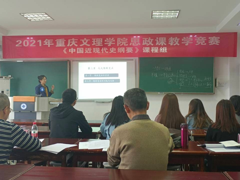 为深入贯彻习近平总书记在学校思想政治理论课教师座谈会上的重要讲话精神和全国、全市高校思想政治工作会议精神,全面落实《新时代高等学校思想政治理论课教师队伍建设规定》(第46号令)等相关文件要求,进一步推动学校思政课教师队伍建设,提升思政课教师的业务能力和育人水平,做好学校新时代大学生思想政治工作。4月25日,由重庆文理学院思想政治理论课建设领导小组主办、mansion88主页承办的2021年思政课教学竞赛在知津楼A501、A502、A504、A506、A508举行。