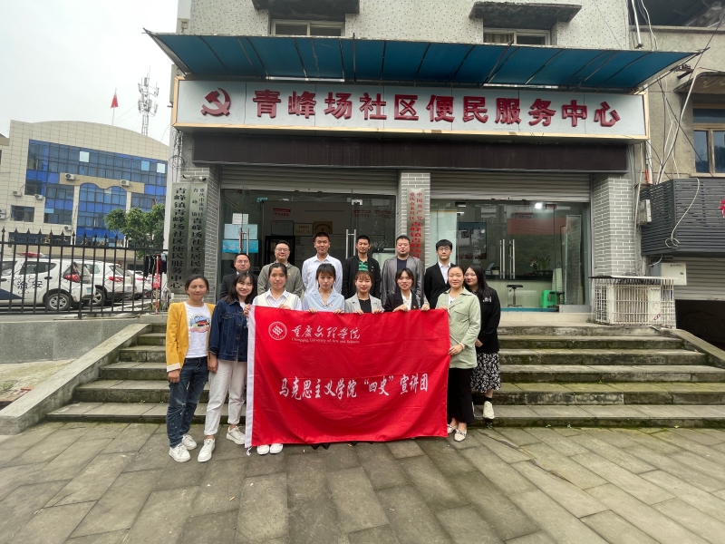为贯彻习近平总书记在党史学习教育动员大会上的重要讲话精神打造“行走的思政课堂”,2021年5月26日15:00,我院“四史”宣讲团七名成员在指导老师李华夏、宋亦薪带领下走进永川区青峰镇社区开展党史学习教育宣讲。