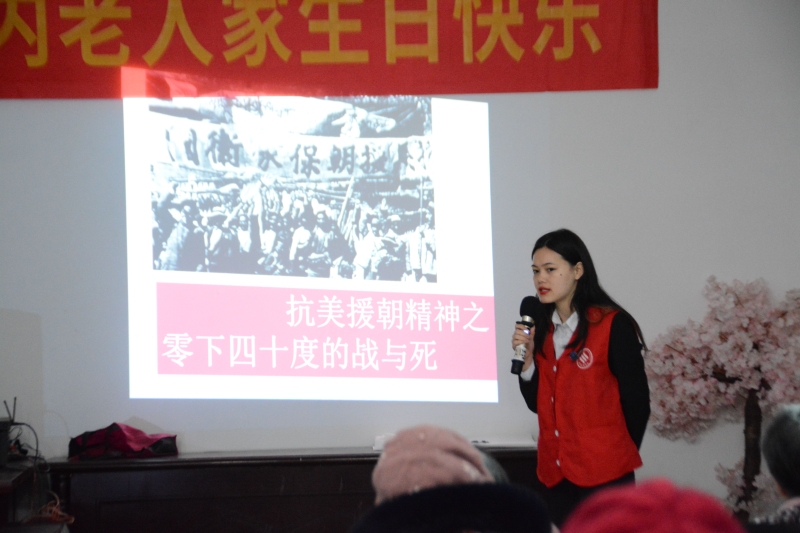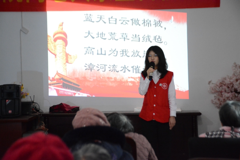 本次活动是我院“四史”宣讲工作室开展的活动项目。通过本次宣讲活动和志愿活动,锻炼了我院学生的综合能力,充分展示了我院青年学生积极向上的精神风貌,弘扬了“尊老爱老敬老”的中华民族传统美德,传递了我们对老年人最真诚的关爱与问候。