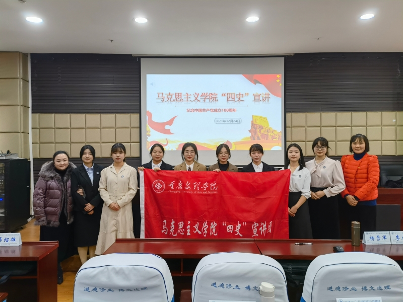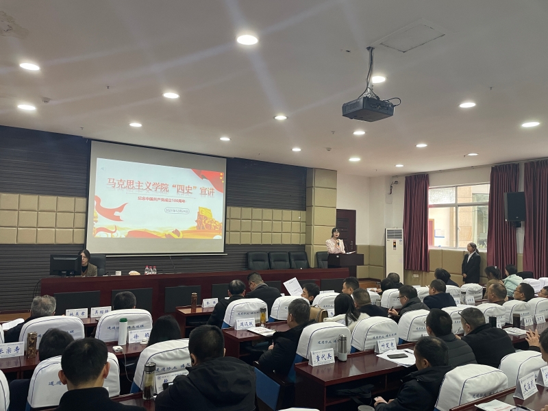 为深入学习贯彻习近平总书记“七一”重要讲话精神,推动以“党史”为主线的“四史”学习教育持续深入开展。2021年12月24日14:30,我院“四史”宣讲团八名成员在指导老师李华夏带领下到学校培训学院为 “国培计划(2021)”﹣重庆市学校党组织书记示范性研修培训班开展宣讲,研修班所有学员观看了此次宣讲。