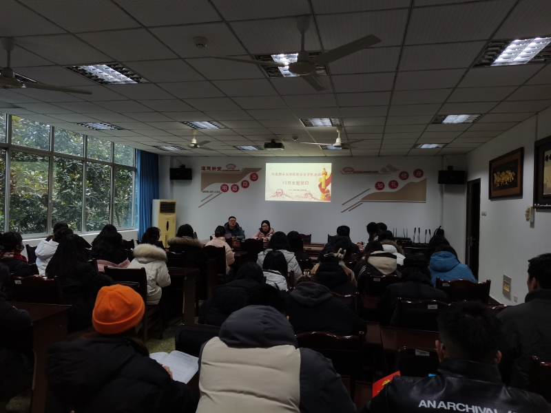 2021年12月28日12:20,我院学生支部在知津楼C205开展12月主题党日,本支部所有党员参会,会议由支部书记李华夏主持。