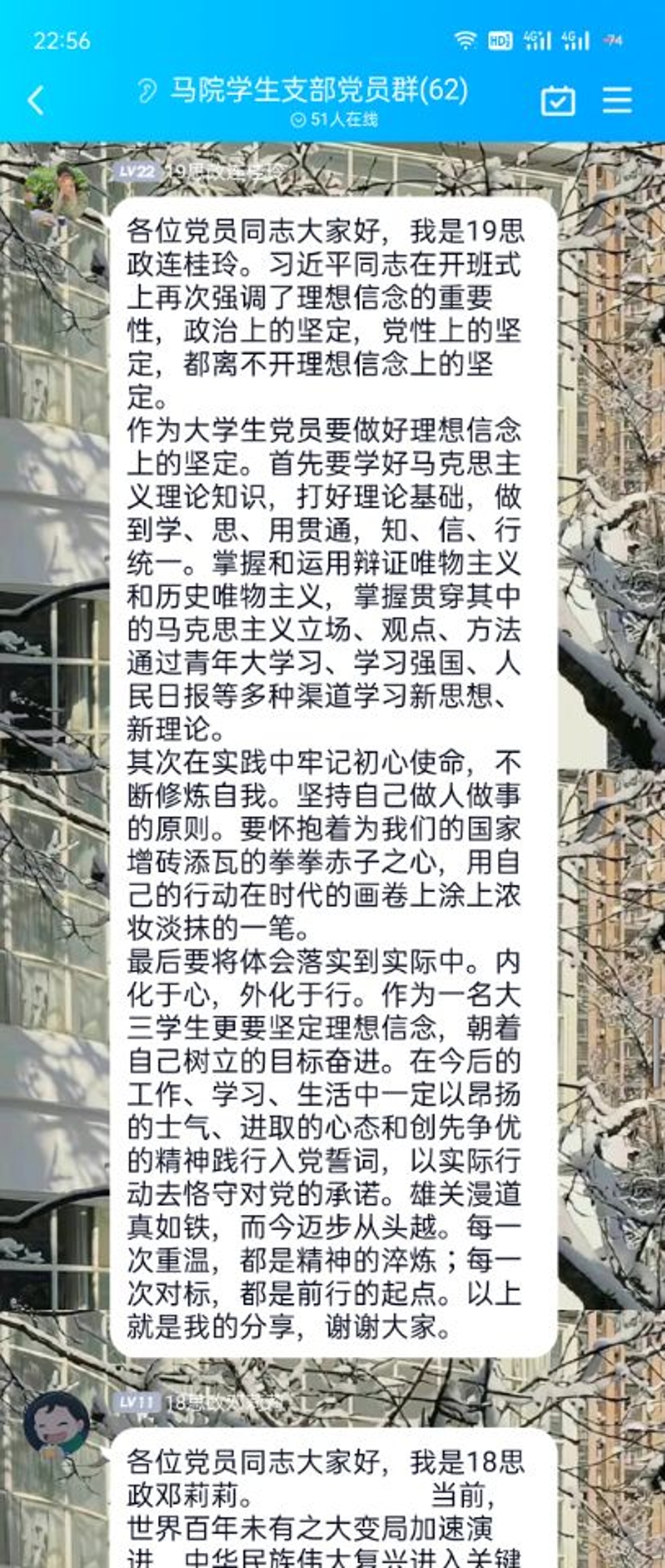 会议开始,李华夏讲到此次主题党日在当前疫情防控背景下具有重要意义,各党员同志要高度重视、认真学习。随后由学生党员王法森、康松作为领学人,带领全体党员就“习近平总书记在中央党校(国家行政学院)中青年干部培训班开班式上的重要讲话精神”围绕坚定信念、守住清廉、锤炼党性等七个方面内容的深入学习。领学结束后,教师党员和学生党员先后积极发言,充分表达了自己愿做新时代无畏者、新形势坚守者、新征程奋进者的勇气和决心。