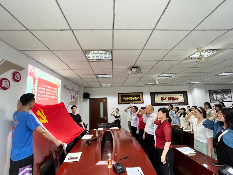 会议伊始,全体党员重温入党誓词。
