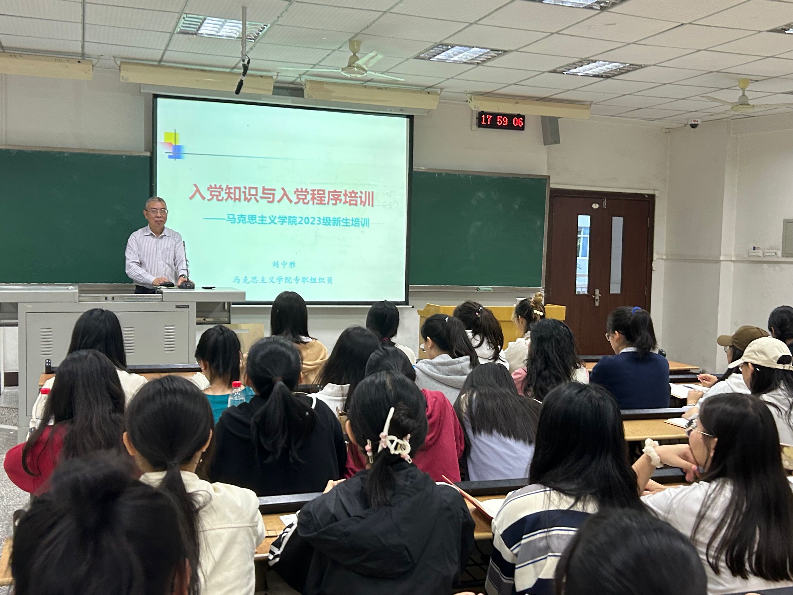 10月15日晚,我院在知津楼D205开展了2023级学生“入党知识与入党程序”培训。mansion88主页专职组织员刘中胜主讲,学院2023级全体新生参加培训。