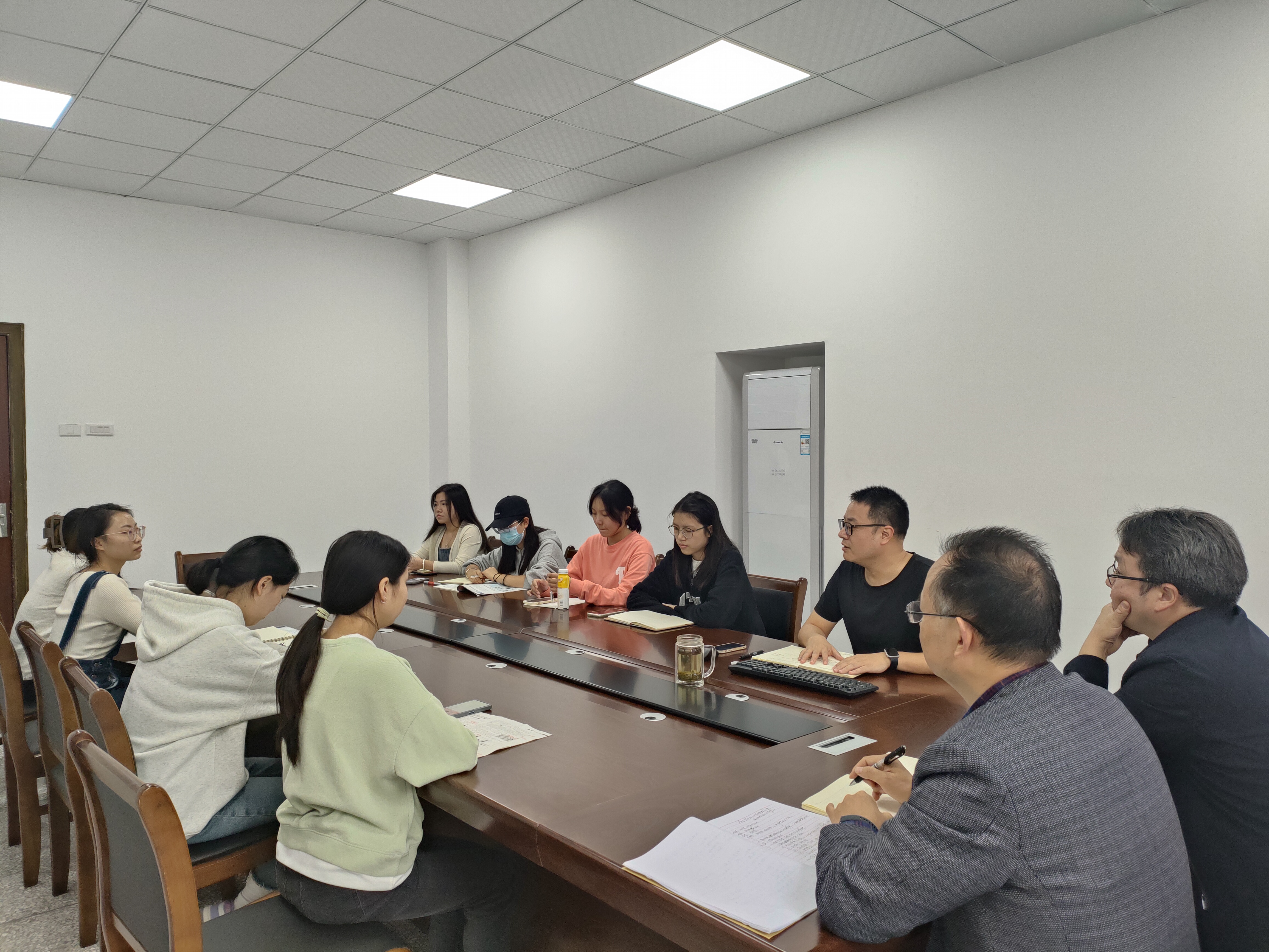 参会各位同学就目前在实习岗位上的工作经历和感悟进行了分享,对自己就业的想法和期望作了交流。李华夏提醒各位在实习过程中要严格遵守实习学校的规定,主动向指导老师请教,做好实习过程性记录,时刻关注就业信息和动态。