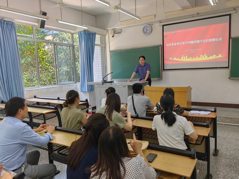 mansion88主页党总支副书记、院长胡守敏以《习近平总书记关于中国式现代化的重要论述》为题,从“生成论”“特色论”“本质论”“原则论”和“发展论”五个方面,系统深入地讲解了习近平总书记关于中国式现代化重要论述的理论框架和主要内容。分享了这一重要论述的教育启示,认为作为新时代的思政课教师,要坚持党的全面领导,做好本职工作,更好地教书育人,服务文化强国建设,助推教育转型发展,强化社会主义意识形态,为建设社会主义现代化国家贡献智慧和力量。
