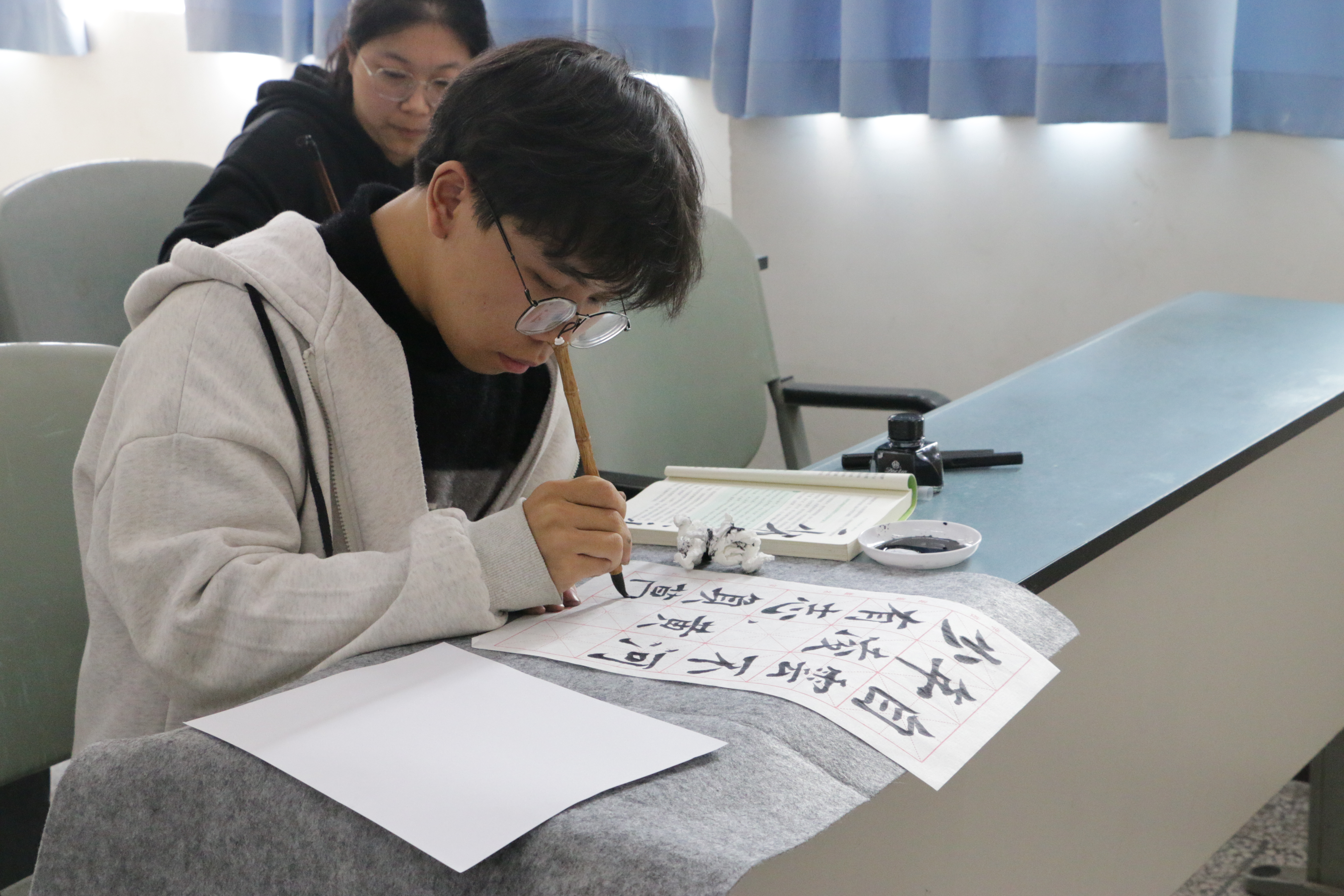 重庆文理学院清澈蓝天学生社区2023-2024学年第一学期“三笔字”大赛于2023年11月22日顺利举办。本次比赛采取现场书写三笔字的方式进行,共有120名学生报名参赛。