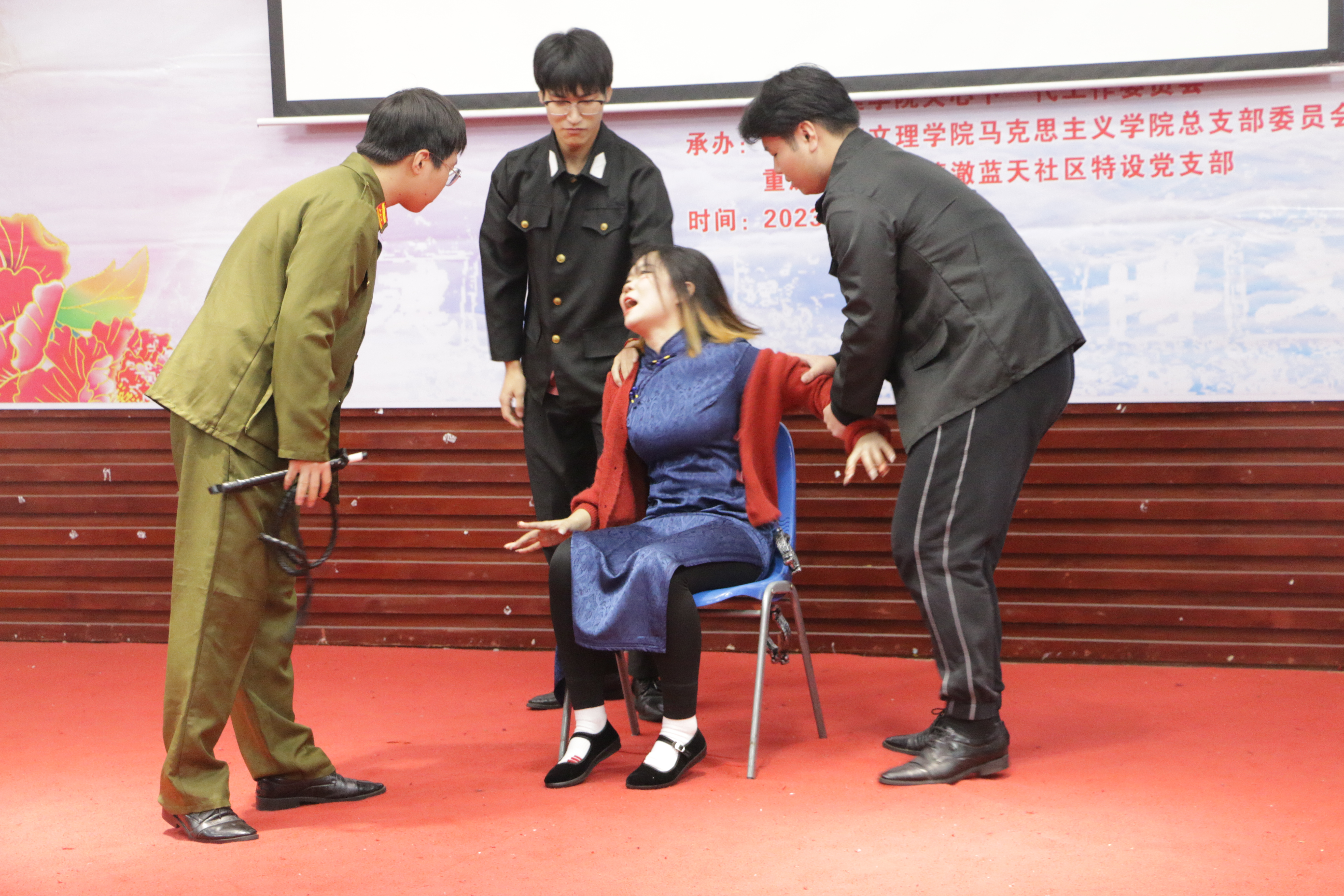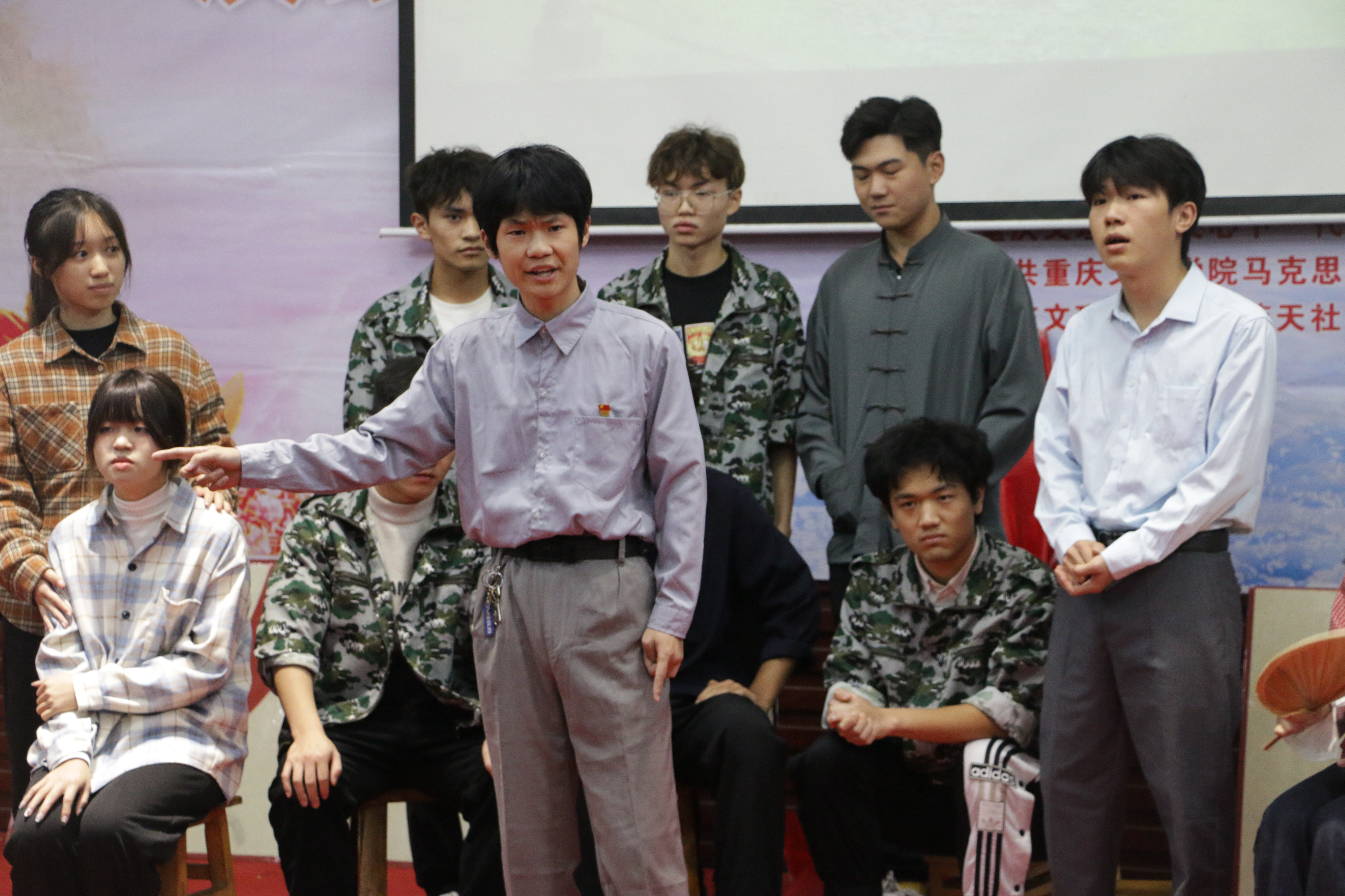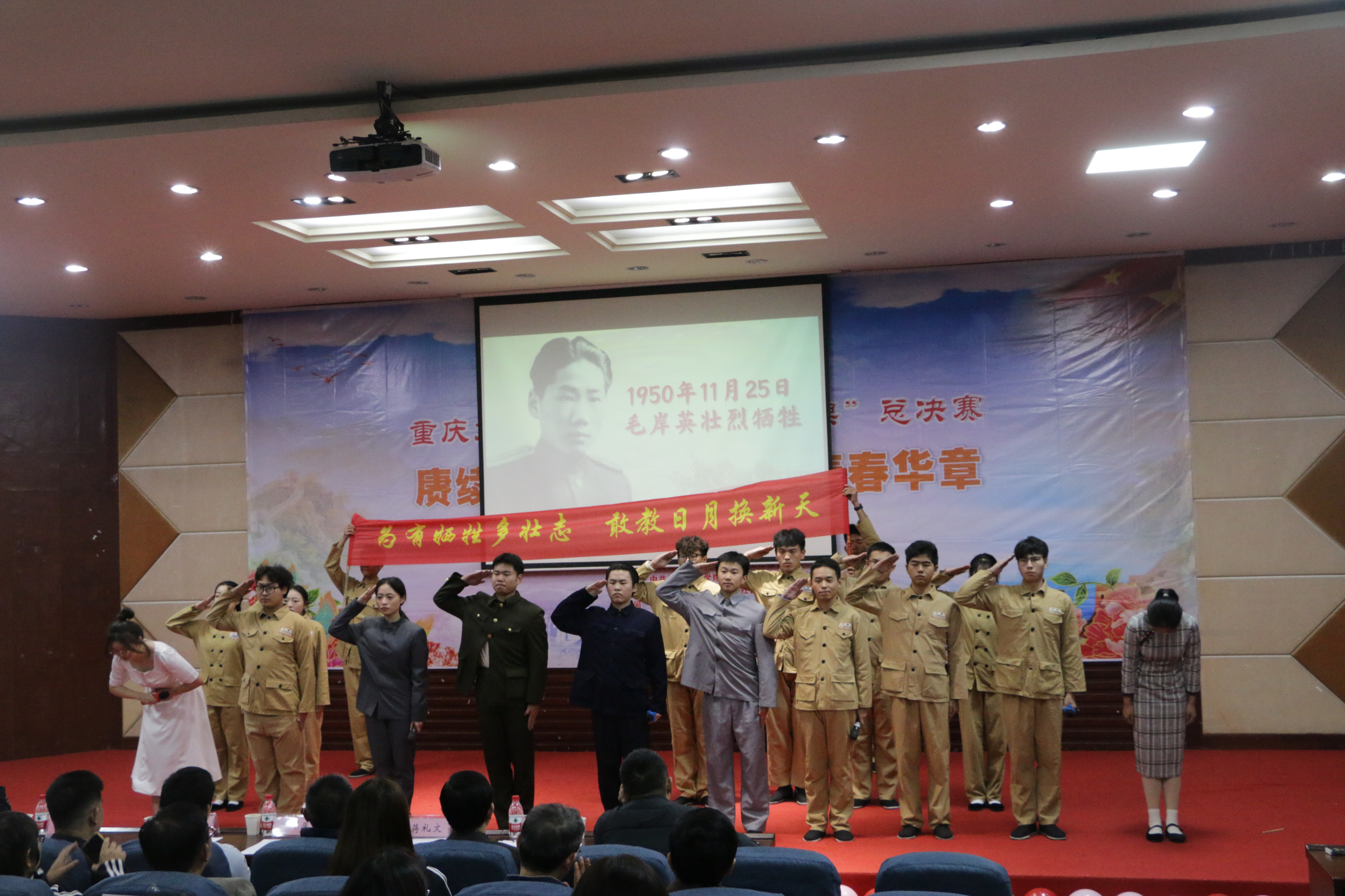 通过前期19个二级学院20余个节目的激烈比拼,最后选拔出10个节目进入总决赛。十组选手通过情景剧表演、朗诵、歌唱、演讲等形式,再现了周恩来、孙家栋、毛相林、毛岸英、江竹筠、徐淙祥、陈陆、陈树湘等先进人物事迹,展现了不同时期共产党人的担当和气节,让师生们深受教育和感动。通过激烈角逐,mansion88主页的作品《洪流中追梦 烈火中永生——红岩精神》、电子信息与电气工程学院的作品《当代“愚公”——毛相林》获得一等奖;教育学院的作品《红军的半条棉被》、mansion88主页的作品《“最可爱”的英雄儿女——毛岸英》、文化与传媒学院的作品《为中华之崛起而读书——周恩来》获得二等奖;药学院的作品《黄金八分栏目——陈陆》、人工智能学院的作品《欣欣田间麦——徐淙祥》、园林与生命科学学院的作品《董必武的特制布鞋》、材料科学与工程学院的作品《北斗之光 星耀乾舆——孙家栋》、音乐学院的作品《铁血师长——陈树湘》获得三等奖。