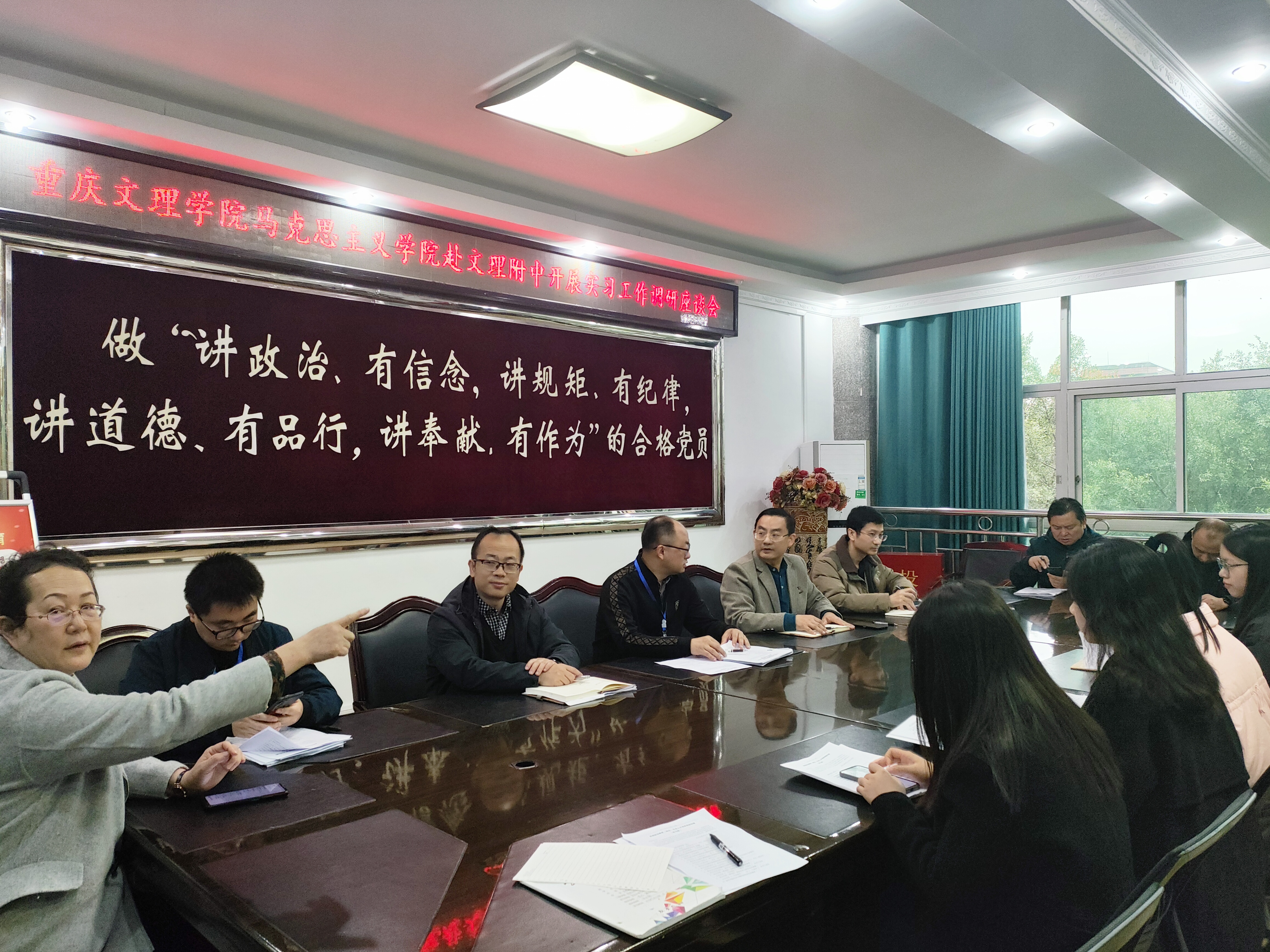 2023年11月29日,mansion88主页副院长李景国带队前往重庆文理学院附属中学调研2020级思政专业(师范)学生实习情况。文理附中副校长朱健、副校长喻德贵、初高中年级组长、指导老师及我校派出的实习指导老师、实习学生参加了调研座谈。