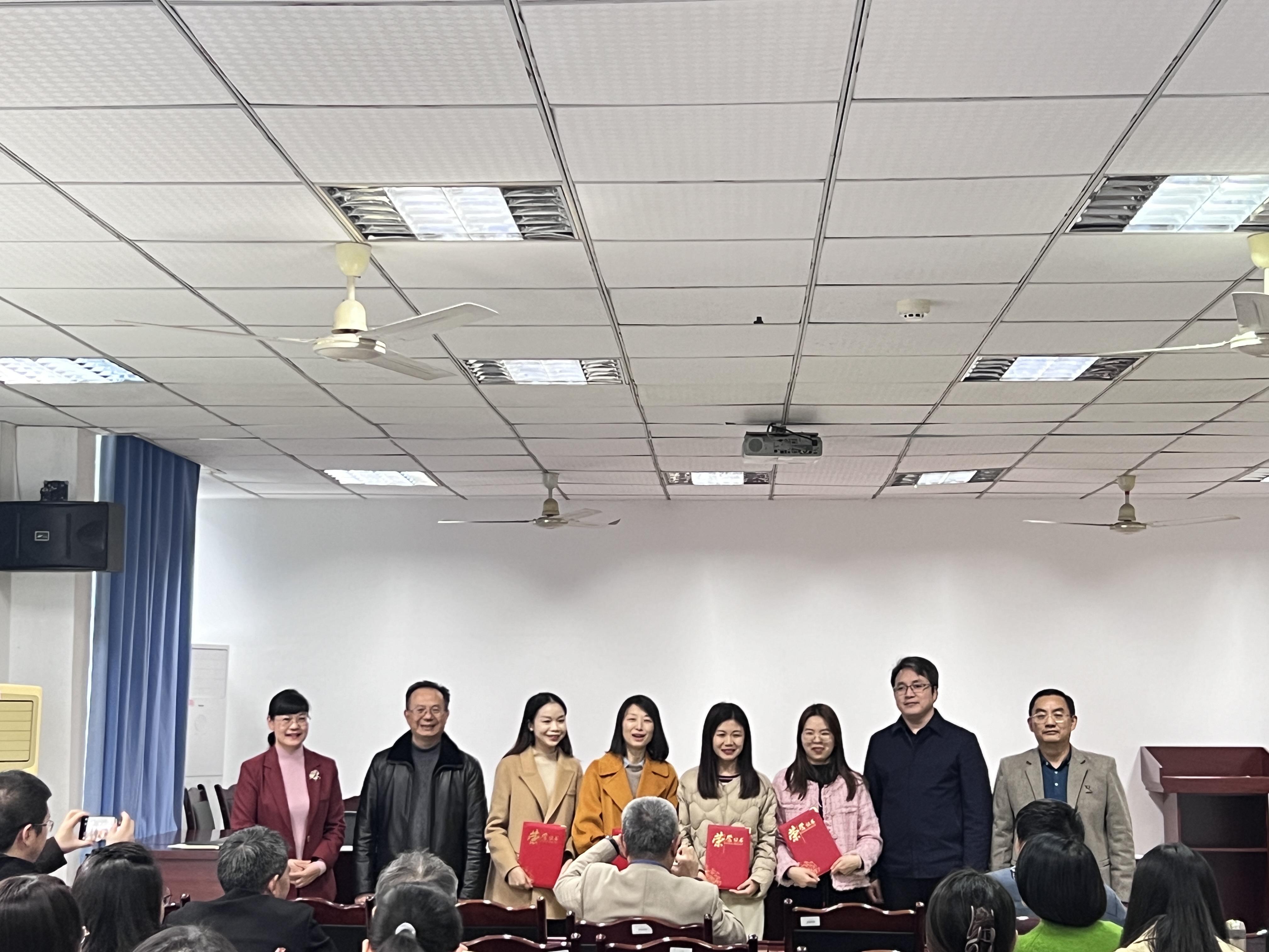 会上,学院专门表彰了参加重庆市2023年思政课教师技能竞赛的获奖教师。院长胡守敏、党总支书记杨正强、副院长李景国、副院长张莉分别为获得单科课程比赛一、二、三等奖的钱莉、孔凡霞、孙淋、唐万辉四位老师颁发获奖证书;胡守敏、杨正强分别为获得混合课程比赛二、三等奖的钱莉、孙淋两位老师颁发获奖证书。