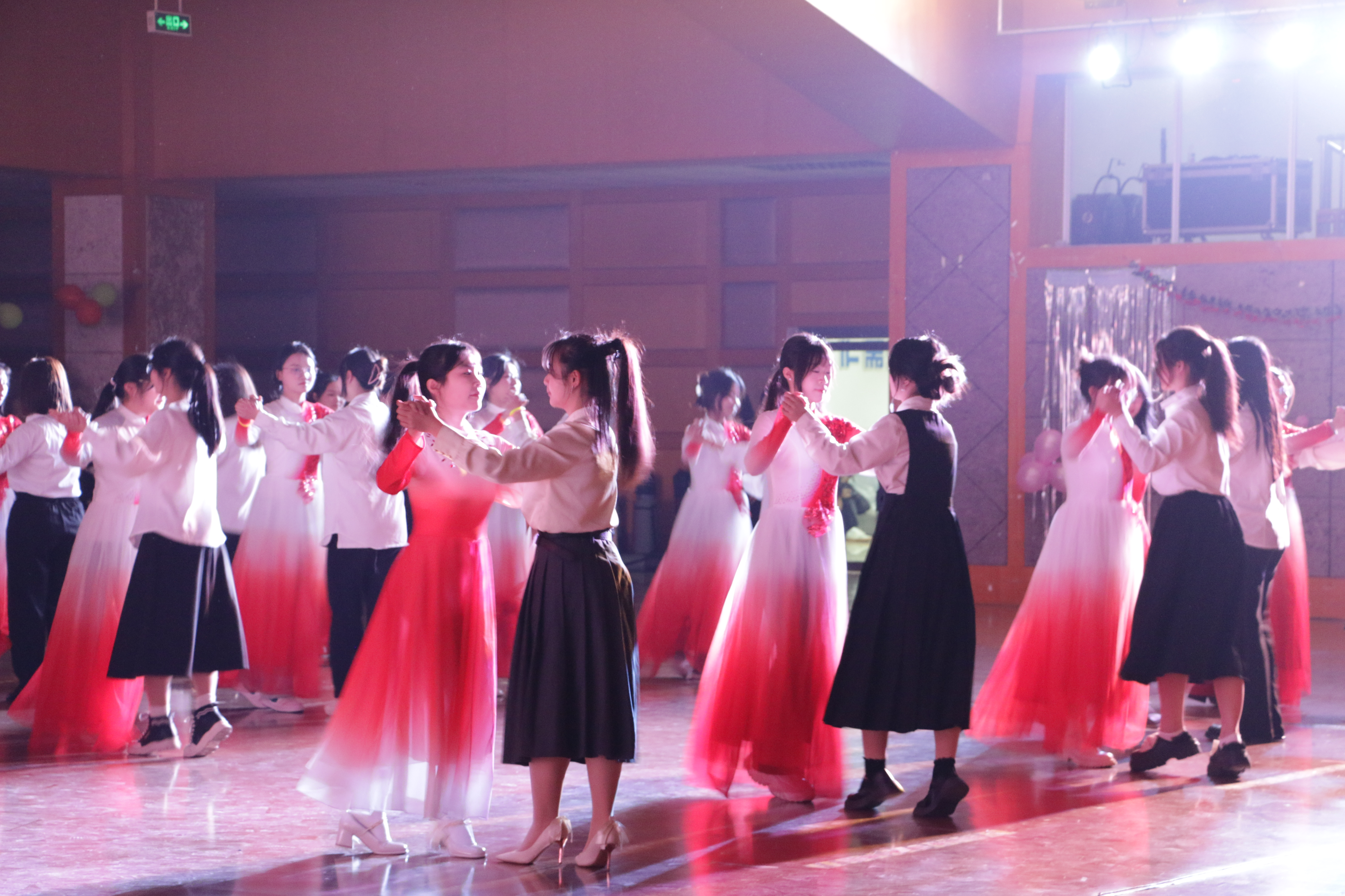 本次交谊舞会既为同学们提供了展示自我的舞台,也加强了师生、同学之间的交流,深化了友谊,锻炼了身体。