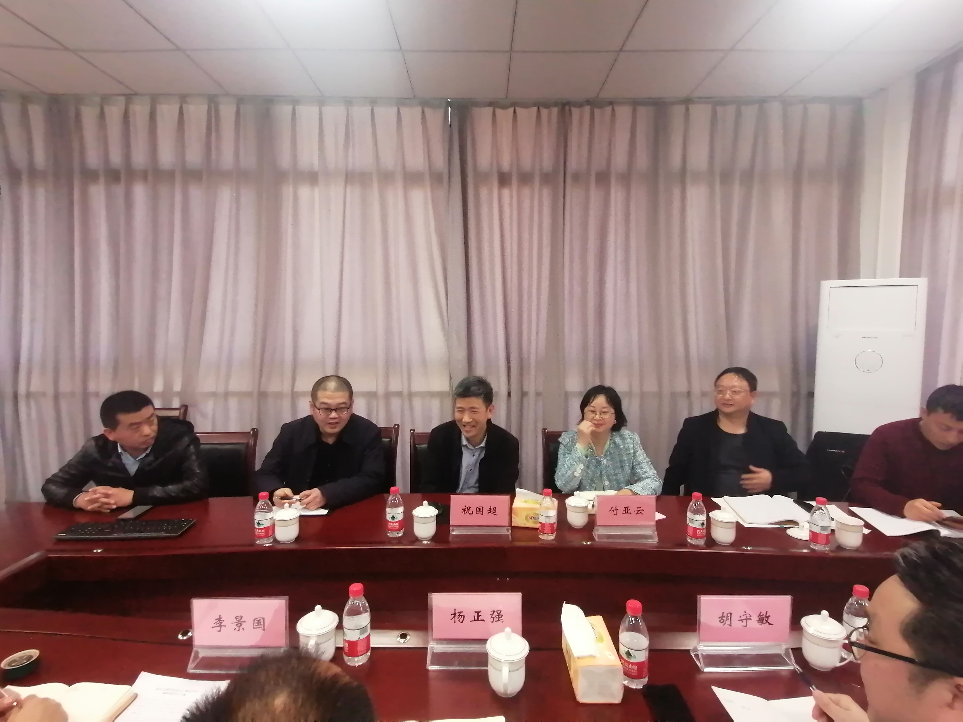 李景国等与会同志就形势与政策、“四史”教育等课程开课情况,思想政治教育专业人才培养方案制定及课程设置情况,包括必修课、选修课、实践教学、实习安排等方面,进行了现场咨询,并与对方进行了深入交流。