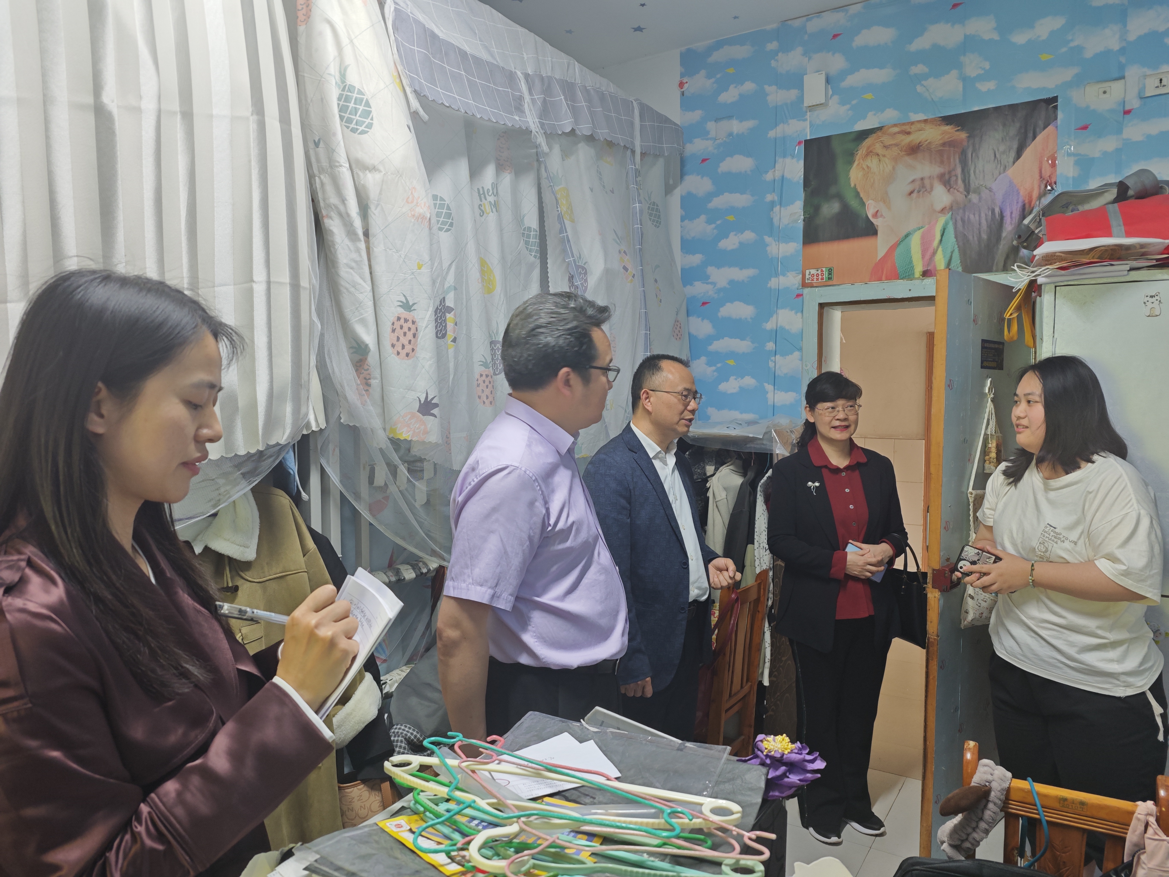 为了解2024届毕业生就业状况和思想动态,3月29日下午,mansion88主页党委书记杨正强,党委副书记、院长胡守敏,副院长张莉及2020级辅导员黄慧敏等,深入学校清澈蓝天社区学生宿舍开展走访慰问。