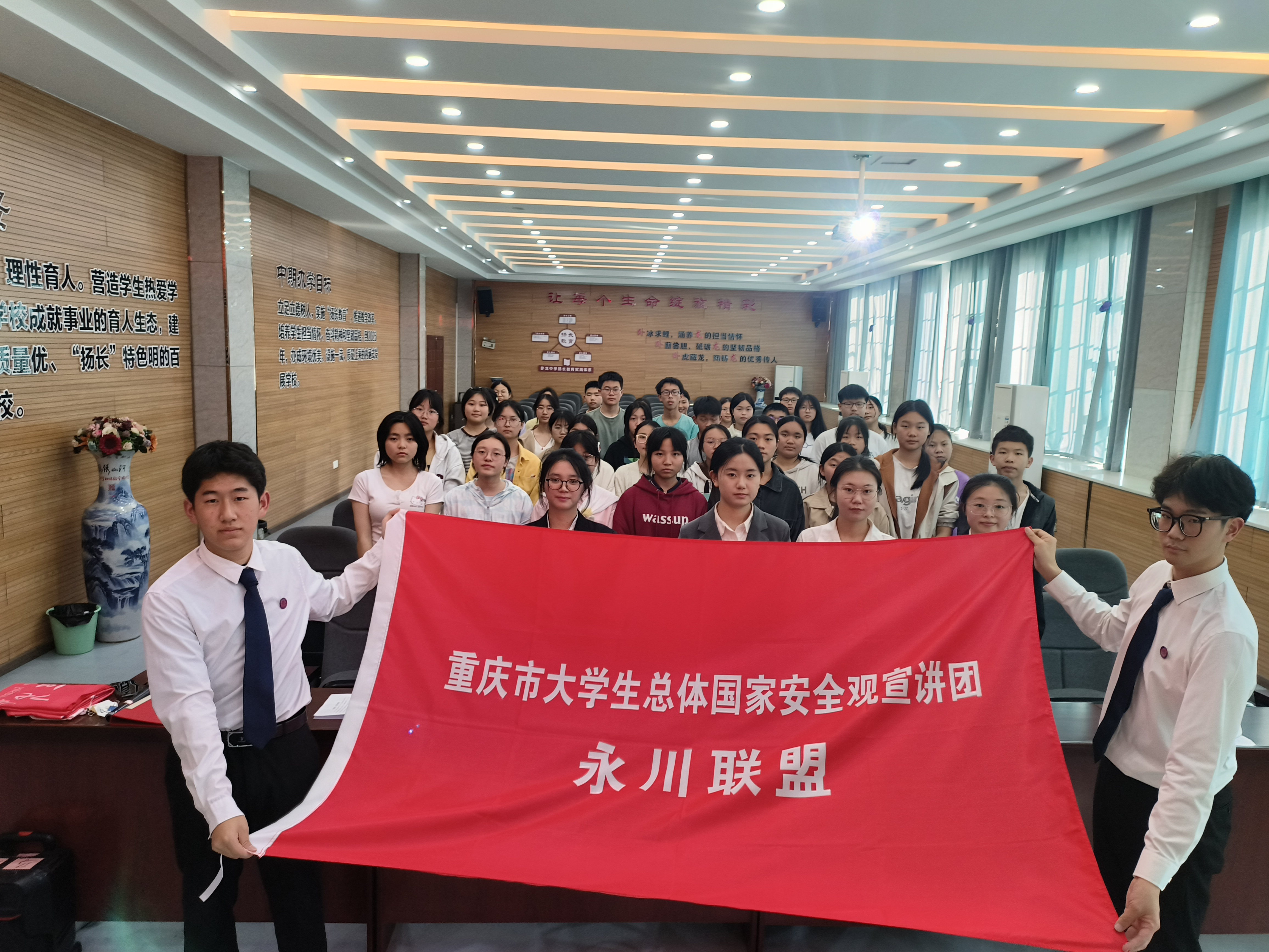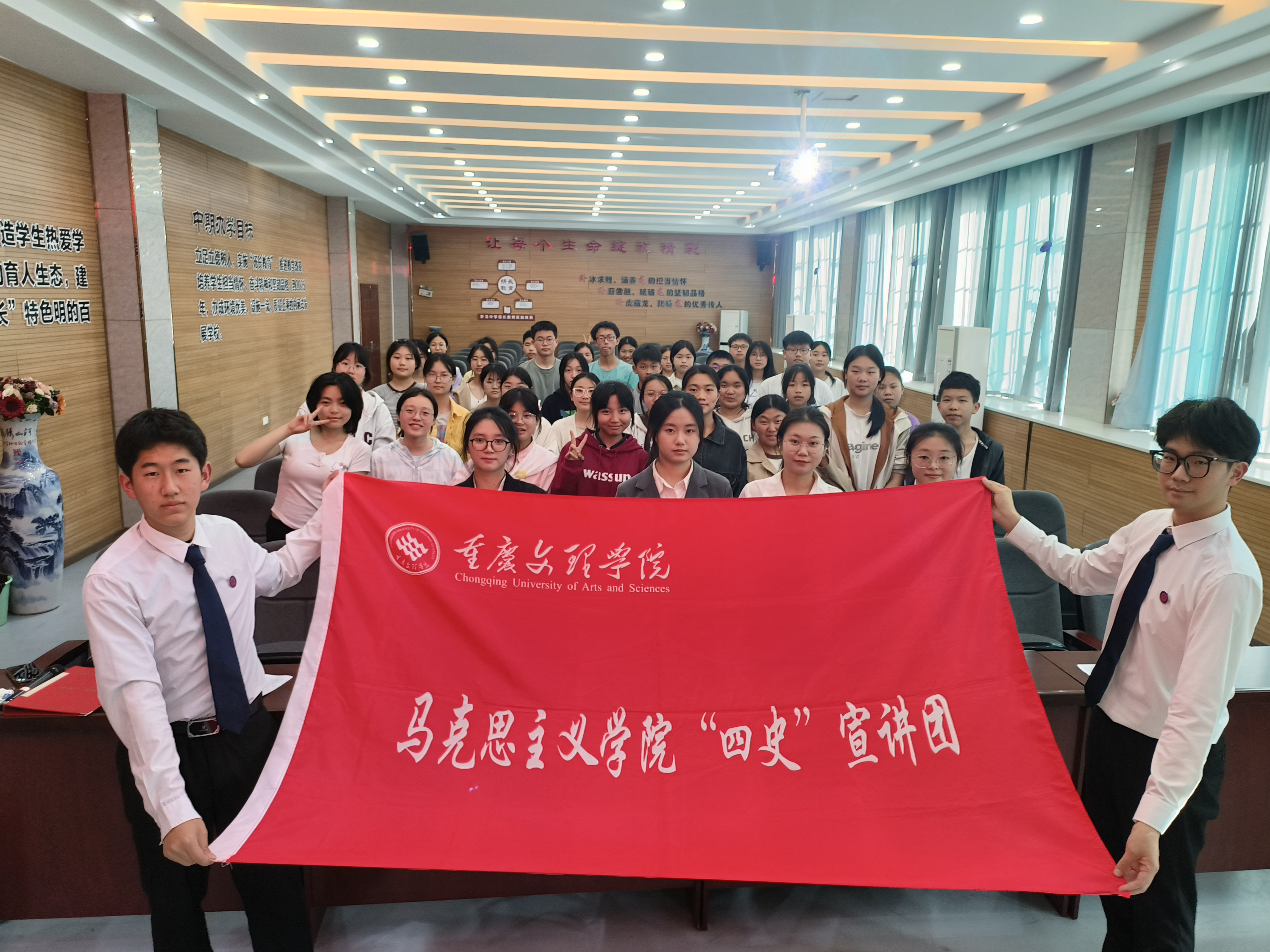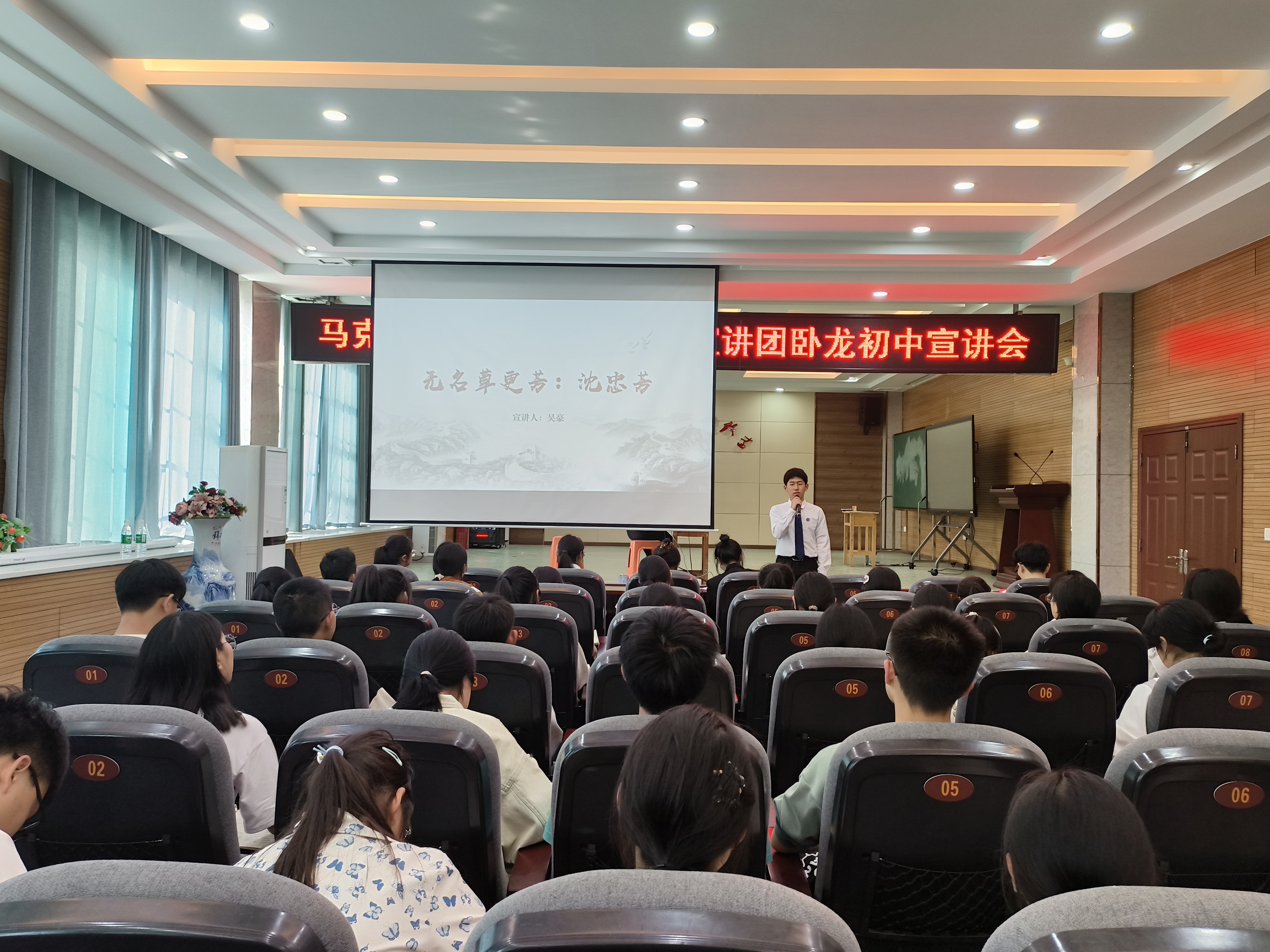 为深入学习贯彻习近平新时代中国特色社会主义思想和党的二十大精神,弘扬革命文化,传承红色基因,打造“行走的思政课堂”,2024年3月29日下午,我院“四史”宣讲团八名成员走进卧龙中学开展党史宣讲。卧龙中学部分团员参加此次活动。
