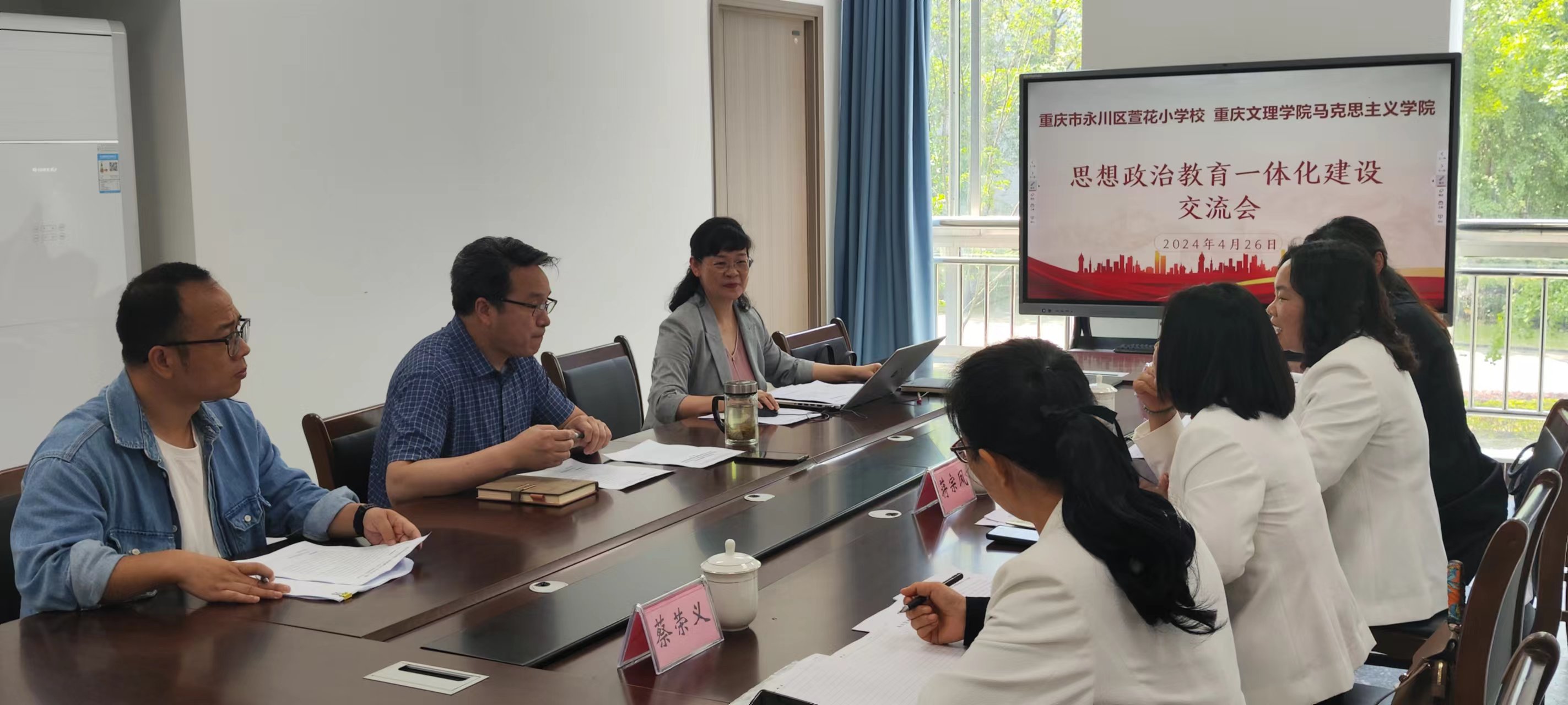 为加强大中小学思想政治教育一体化建设工作,充分发挥思政育人的突出优势,促进青少年全面发展,4月26日上午,mansion88主页与永川区萱花小学校在知津楼B210会议室开展了思想政治教育一体化建设交流活动。萱花小学副校长蒋宗凤,骨干教师肖晗、蔡容义、樊小容;重庆文理学院mansion88主页院长胡守敏、副院长张莉、教师代表张苏强等参加交流会。会议由张莉主持。