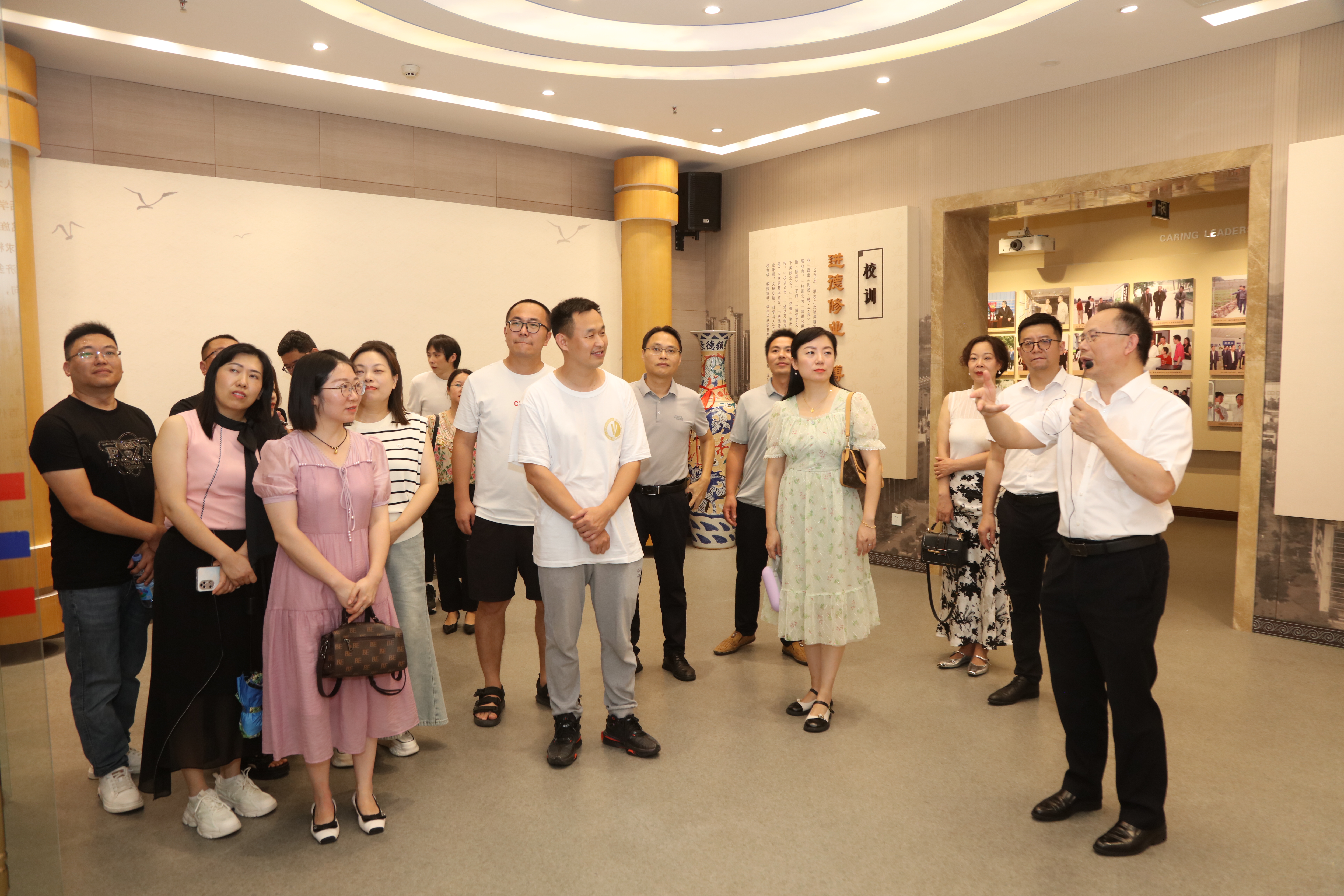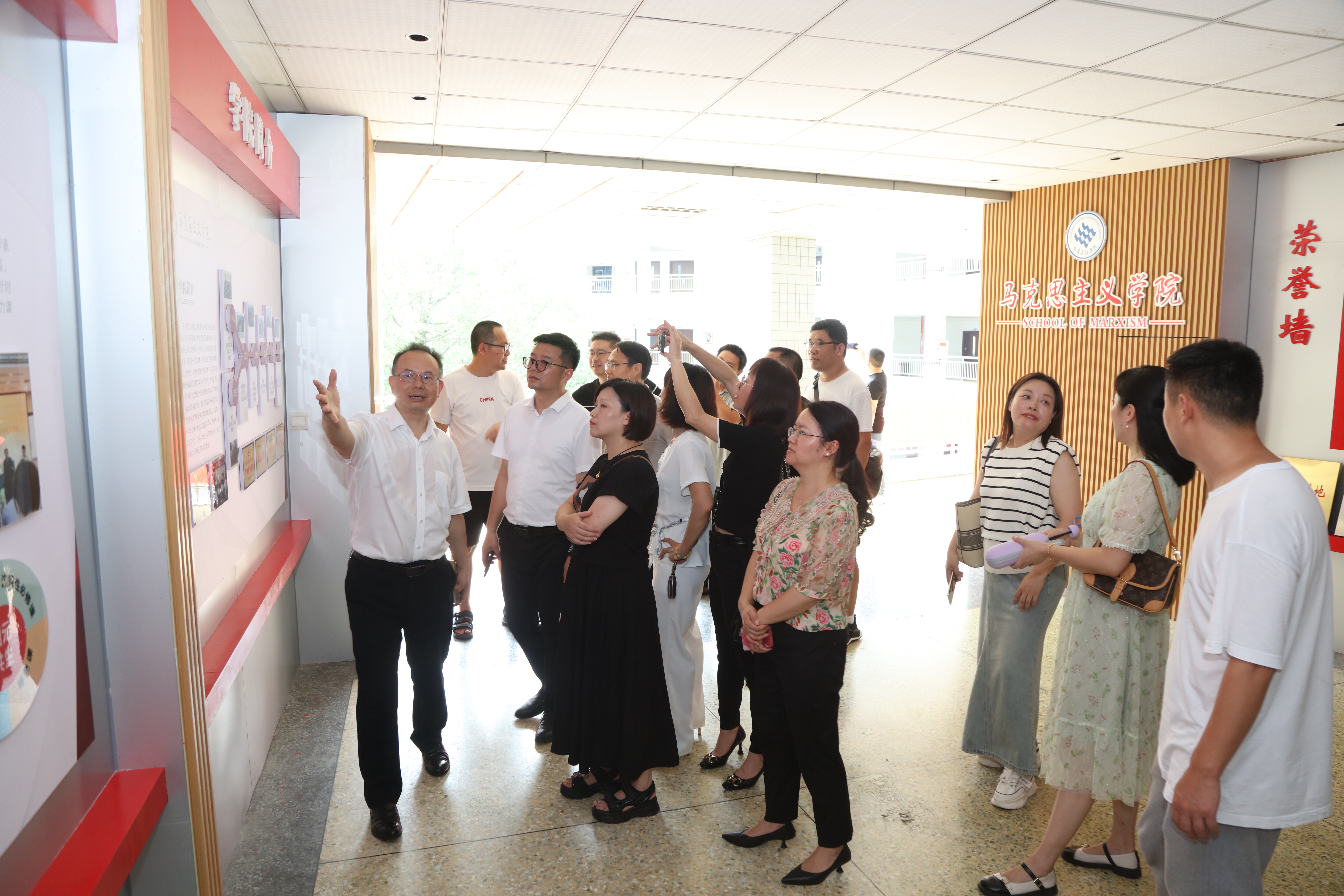 来到mansion88主页,校友们重点参观了马院的文化墙建设。杨正强向校友们详细介绍了马院的发展历程、“一训三风”(院训、院风、教风、学风),以及在人才培养、科学研究、社会服务等方面取得的显著成绩,重点介绍了党的建设、思政课建设等方面的特色亮点和发展愿景。