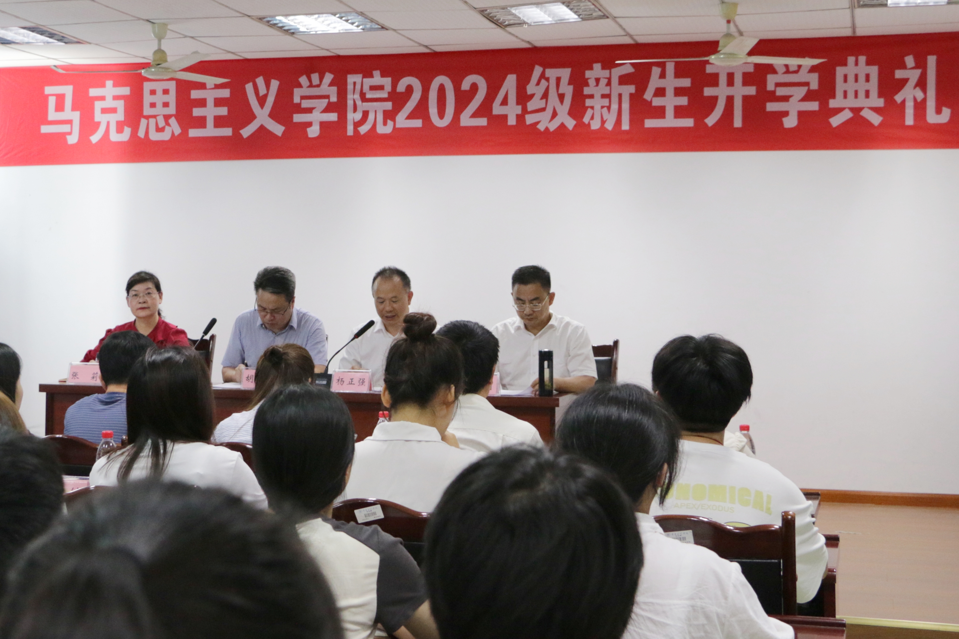 9月9日下午,重庆文理学院mansion88主页2024级新生开学典礼在知津楼C205会议室举行,学院全体领导班子成员、科级干部、各教研室主任、教师代表、辅导员、在校高年级学生代表、2024级全体新生参加了开学典礼。学院党委书记杨正强主持典礼。