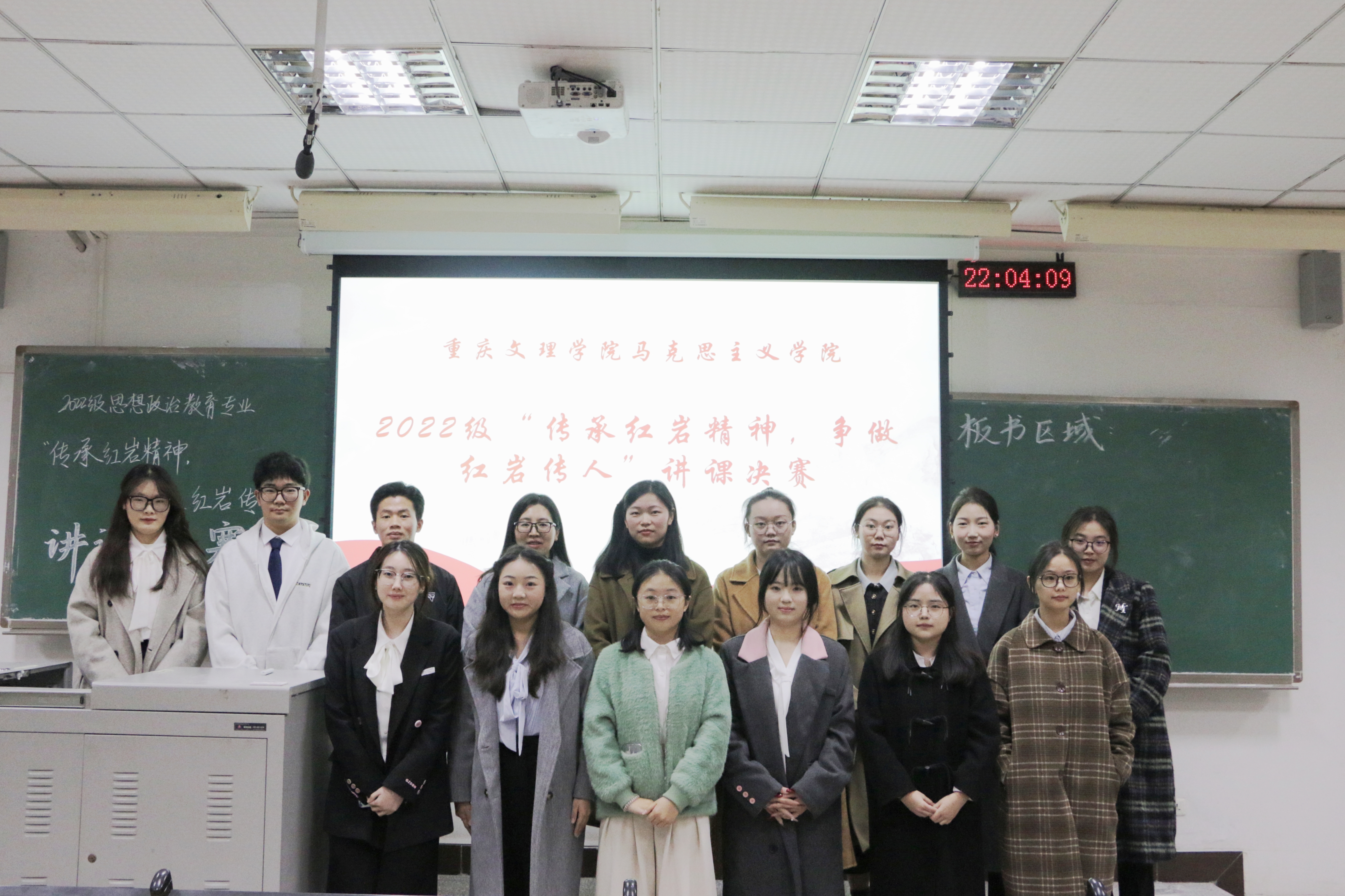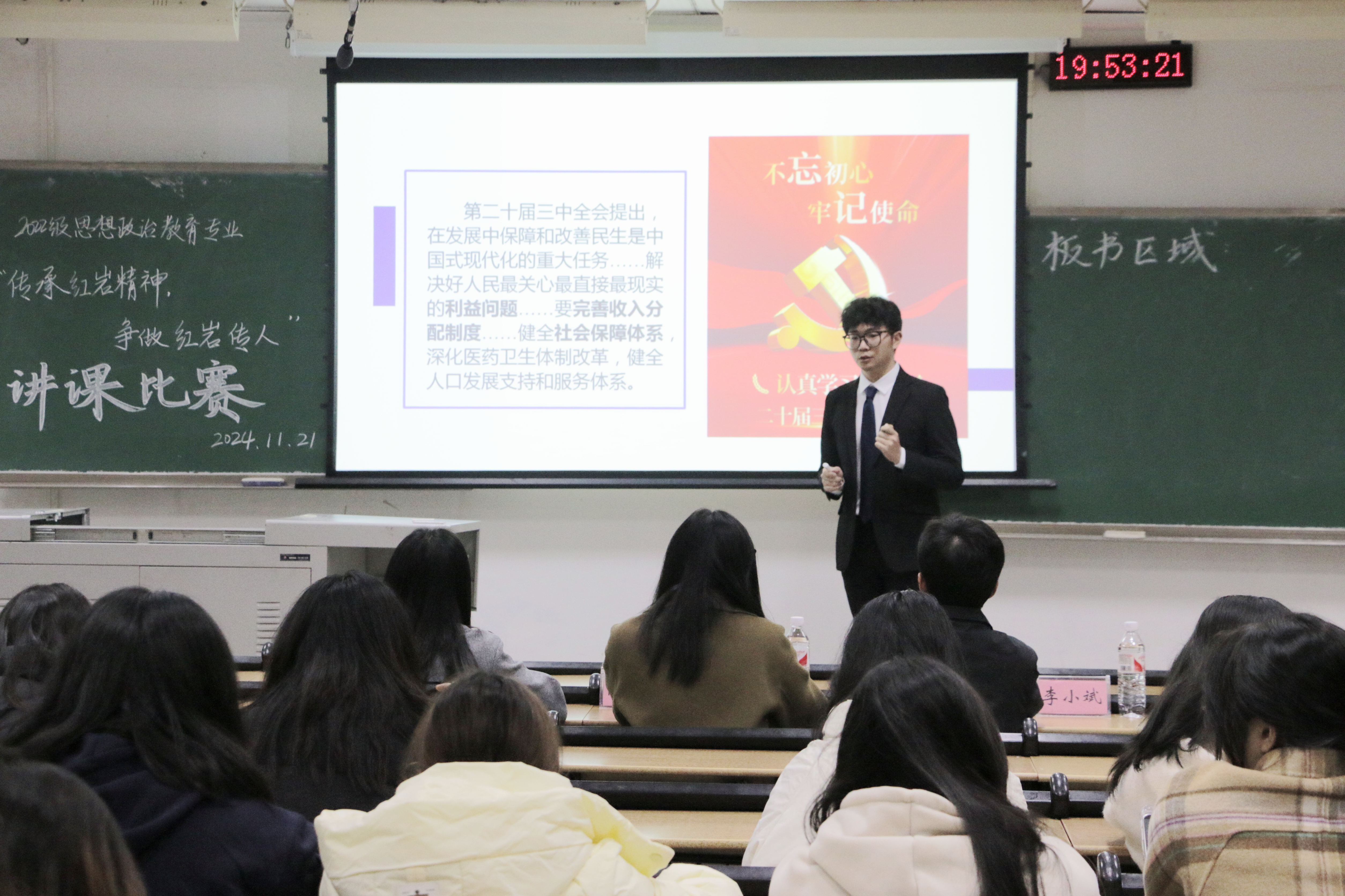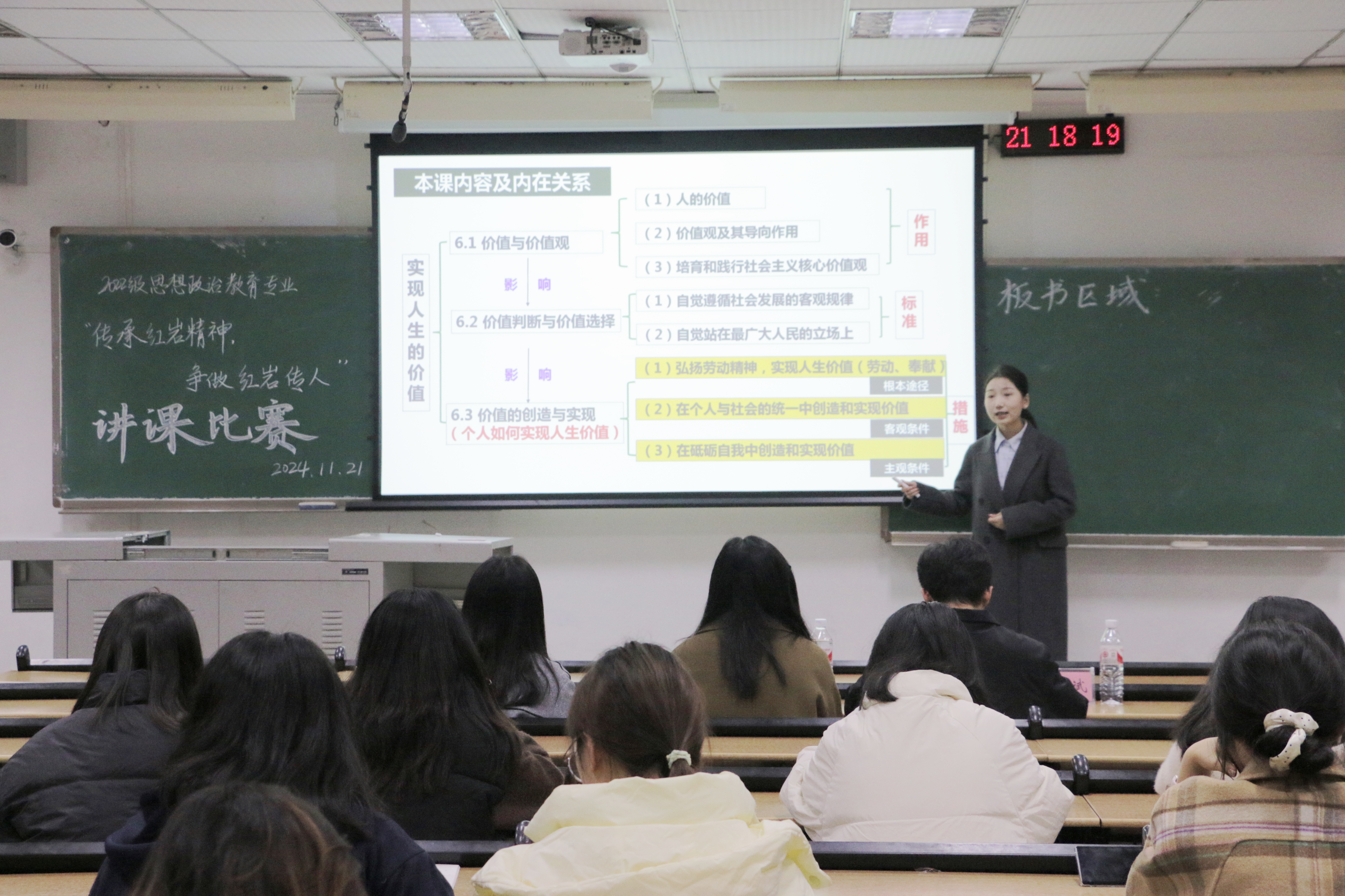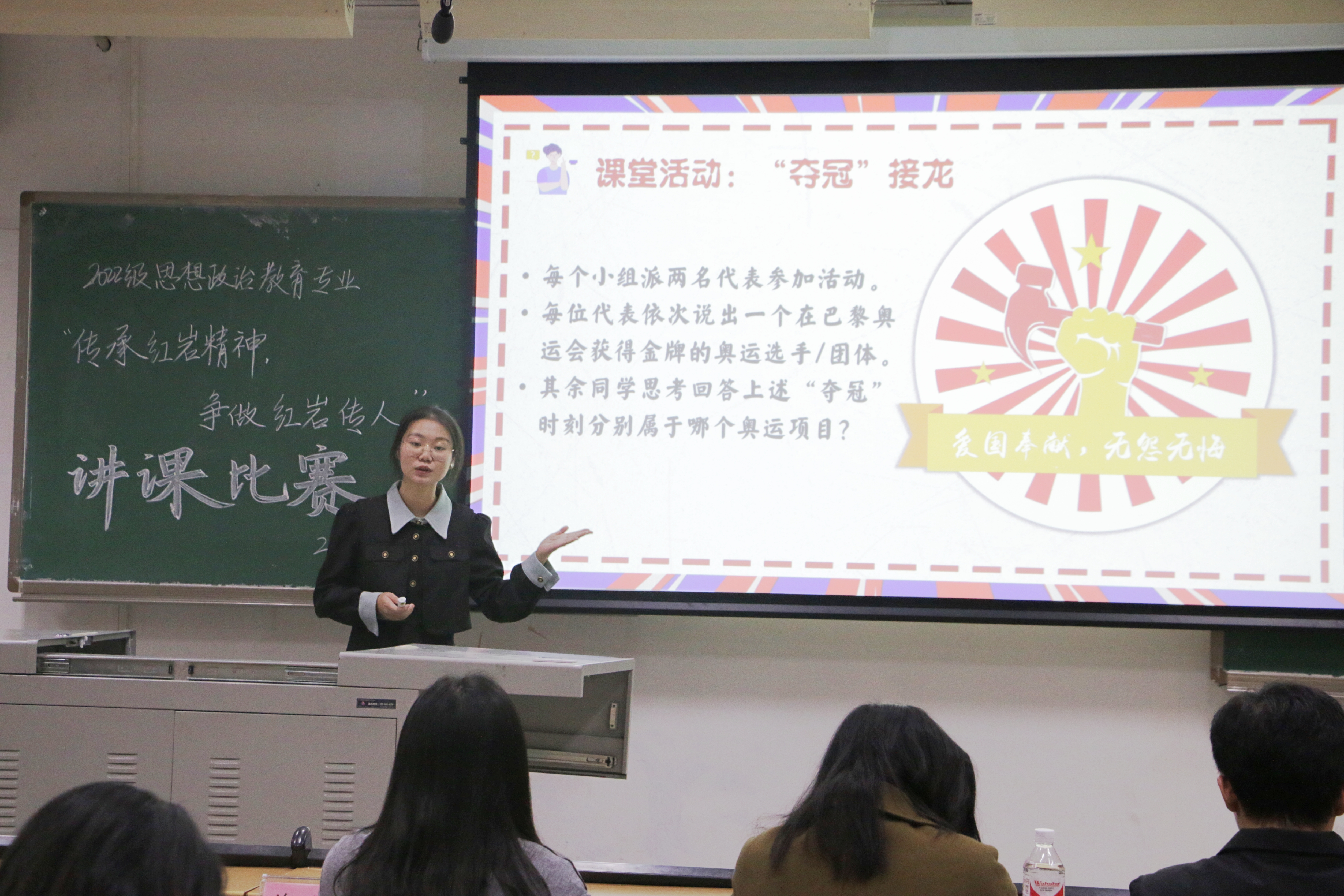 为提高mansion88主页思想政治教育专业学生的专业技能,展示教学改革的新成果,我院于11月21日晚在红河A区知津楼D204成功举办了主题为“传承红岩精神,争做红岩传人”的讲课比赛决赛。陈垒垒、董芳芳、李小斌三位老师担任评委。