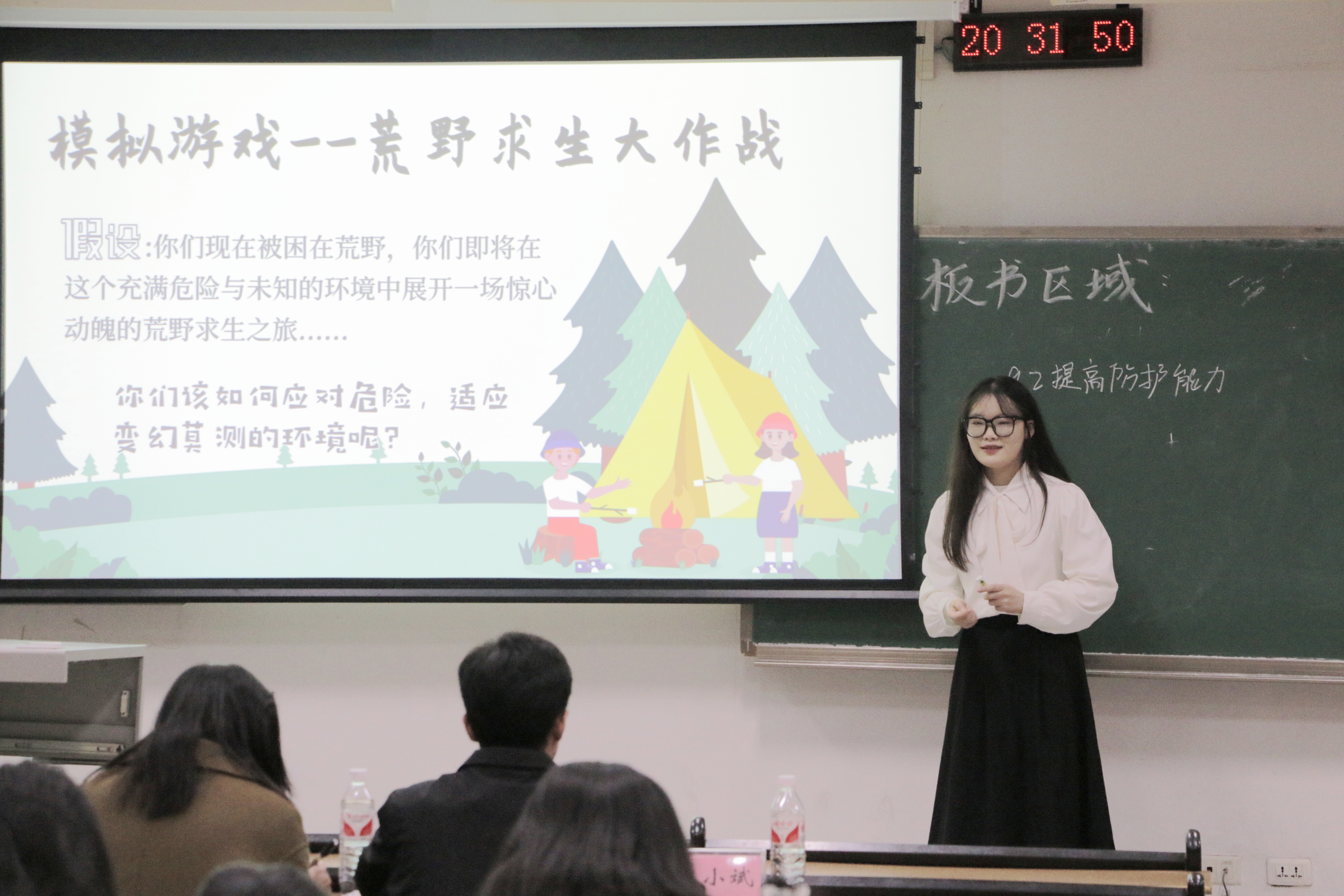 陈垒垒老师对本次比赛进行了点评,她对同学们的精心准备、认真严谨、精彩展示给予充分肯定,同时从确立选题、教学重难点的讲解、教学过程、师生互动、语言表达、板书书写、情感升华等方面提出了改进建议,她希望大家及时总结经验,继续努力提高教学技能和综合素质。