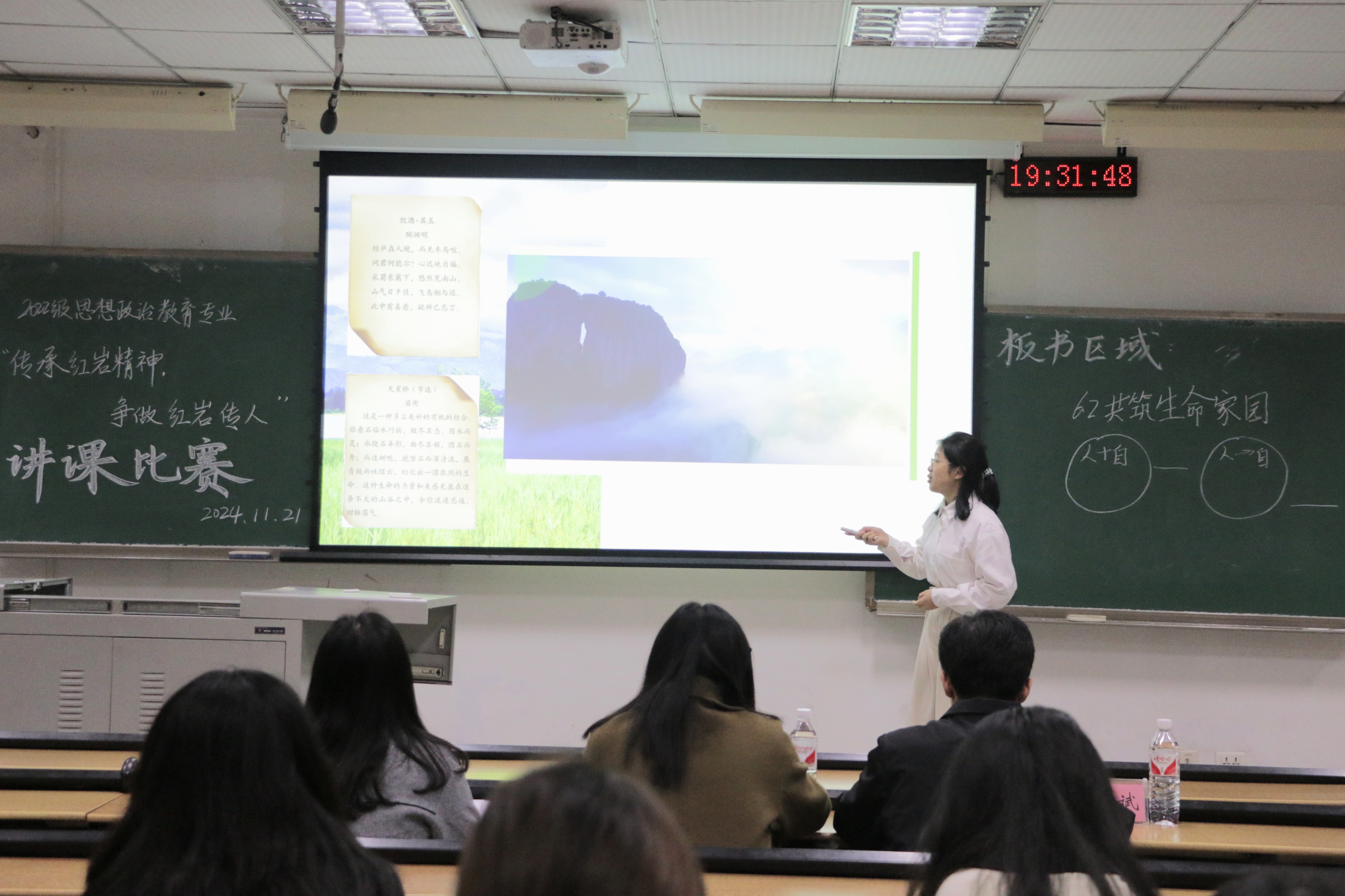 本次比赛以学生个人为单位报名参赛,要求选择初、高中阶段思政课教材某一章节或某一目内容进行课件制作并进行展示汇报,既加强了2022级学生对初高中教材的理解和对讲课流程的熟悉,又锻炼了学生在短时间内制作多媒体课件的能力。比赛分为初赛与决赛两个阶段。在11月中旬抽签分为4组举行了初赛,选拔出13名同学进入决赛。