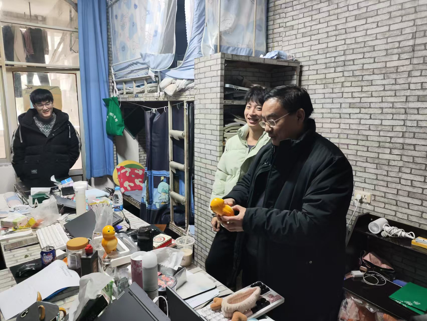 在与同学们亲切交谈中,询问了同学们的生活、学习及家庭情况,鼓励同学们抓紧时间,认真复习,以最好的状态迎接期末考试。来到大四的学生宿舍,询问了他们的考研、实习情况,引导他们要认清当前就业严峻形势,改变就业观念,抓住一切机会,先就业再择业。在走访慰问和安全检查中,都引用了一些典型的火灾等安全事故案例,特别强调了宿舍安全问题,叮嘱大家要全面排查宿舍存在的安全隐患,确保大家的人身和财产安全,安心学习和生活。