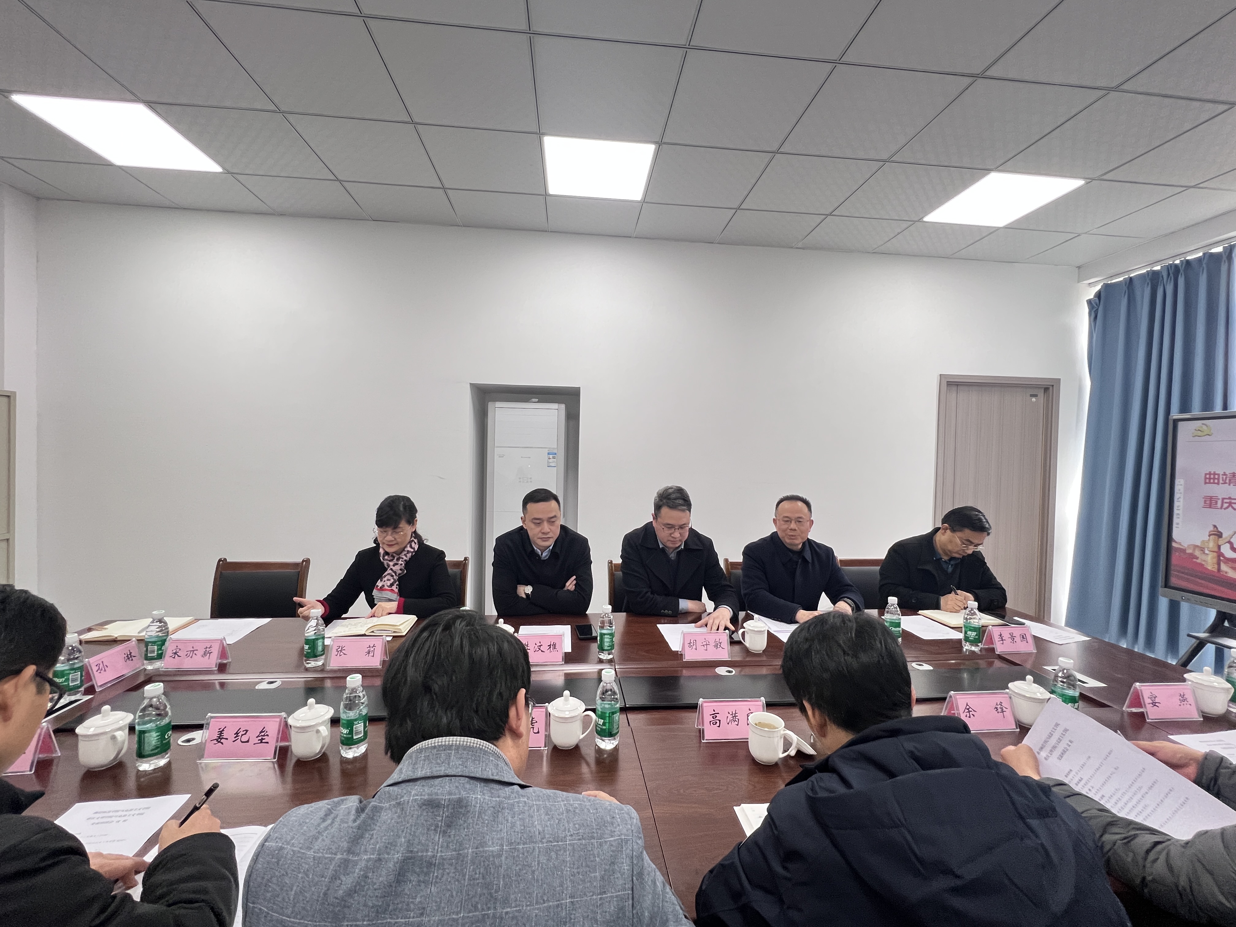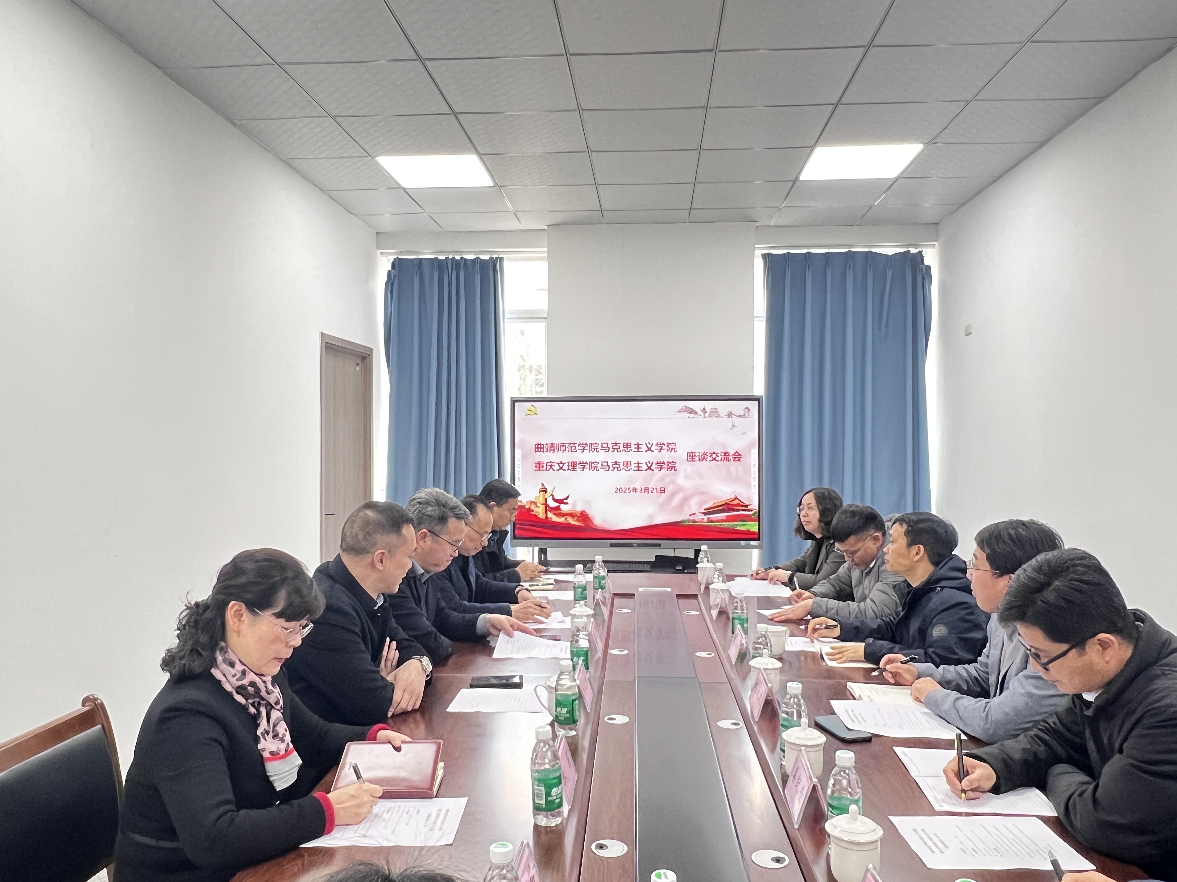 3月21日,云南曲靖师范学院mansion88主页院长高满良、副院长杨天虎率队来访我院开展考察交流活动。我校教务处处长胡守敏、研究生处处长樊汶樵及我院党委书记杨正强,党委副书记、院长张莉,党委副书记、纪委书记、副院长李景国,党政办、教学办、相关教研室负责人参加了座谈交流。