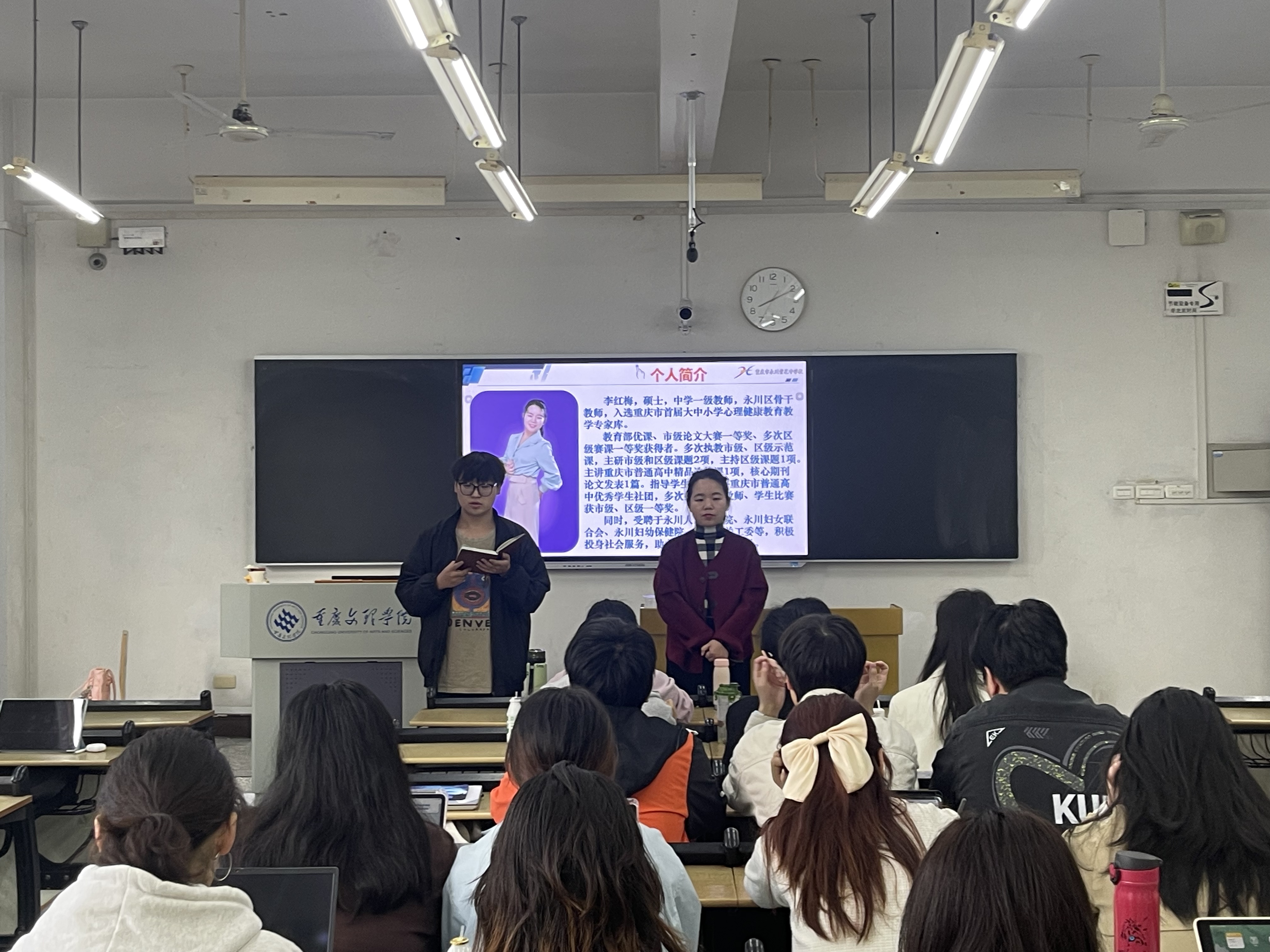 为深入贯彻落实党的二十大、二十届三中全会精神,推动大中小学思政课一体化改革创新,培养优秀的思想政治教育后备人才,2025年3月27日,mansion88主页特邀重庆市永川区骨干教师、永川区萱花中学校教师李红梅老师为2022级思想政治教育师范专业本科学生授课。