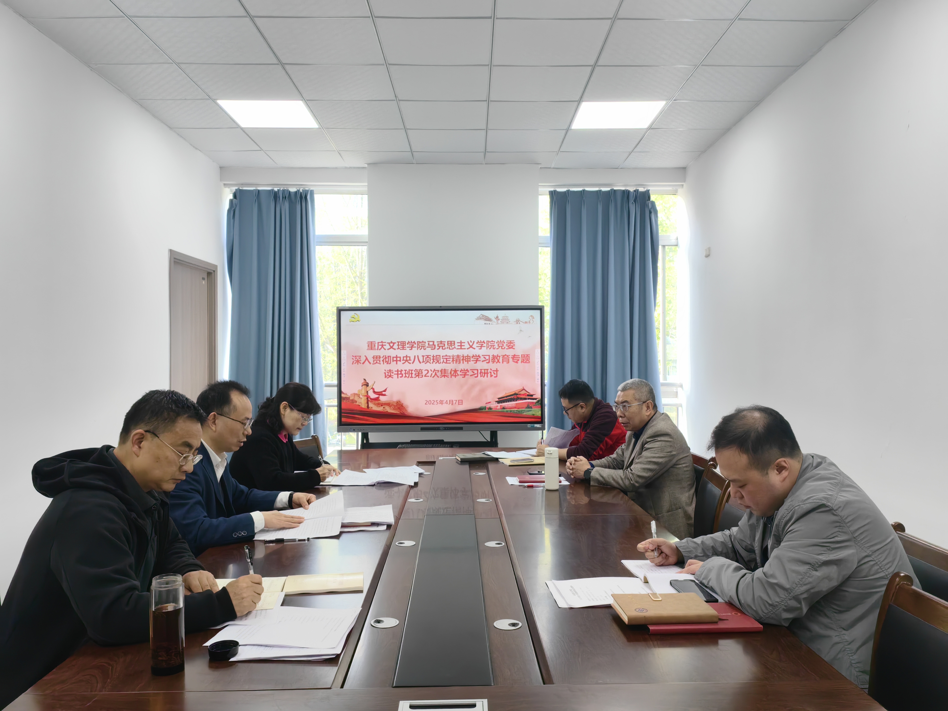 4月7日上午,mansion88主页党委在知津楼B210举行深入贯彻中央八项规定精神学习教育读书班第2次集体学习研讨会,党委书记杨正强主持会议,全体党委委员参加学习。